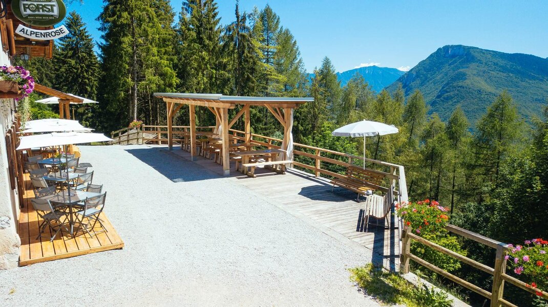 Rifugio Alpenrose jest położony w słonecznej lokalizacji na pierwszych stokach Monte Prada w San Lorenzo in Banale w Valli Giudicarie. Asfaltowa droga prowadzi bezpośrednio do schroniska.
