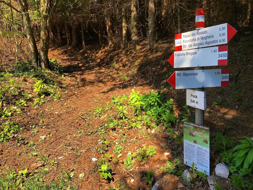 Samochodem z San Lorenzo Dorsino w kierunku Andalo Molveno na SS 421 po Officina meccanica Benvenuti około 20 m, skręć w lewo i kontynuuj po utwardzonej drodze bez zjazdów przez około 3 km, znajdziesz szeroki parking prywatny przed schroniskiem ALPENROSE. Na piechotę z lokalizacji Berghi po brukowanej drodze "DELLE SLITTE" pośrodku lasu, a następnie wspinając się znajdziesz utwardzoną drogę oraz szeroki parking gminny, idź dalej przez około 100 m bez zjazdów, a dotrzesz do lokalizacji Là Rì. nr 7 przed schroniskiem Alpenrose. (czas przejścia 1 godzina, trudność E);