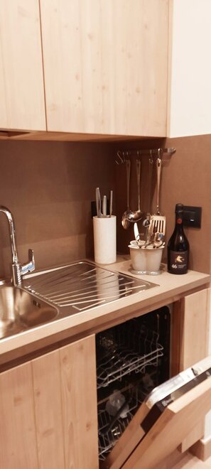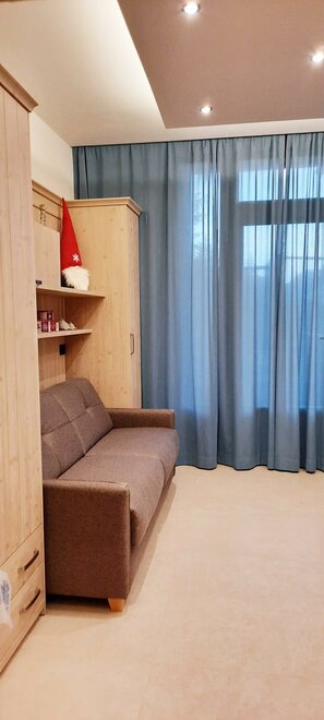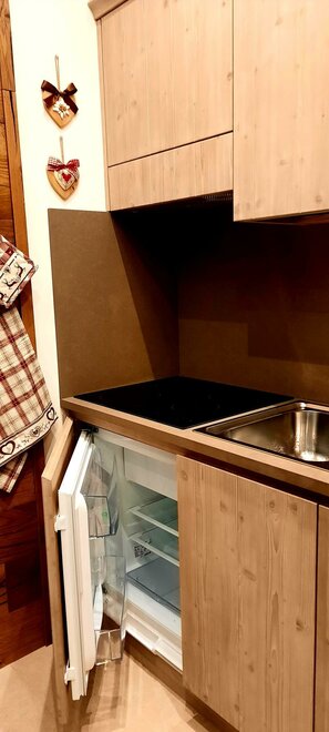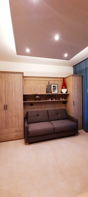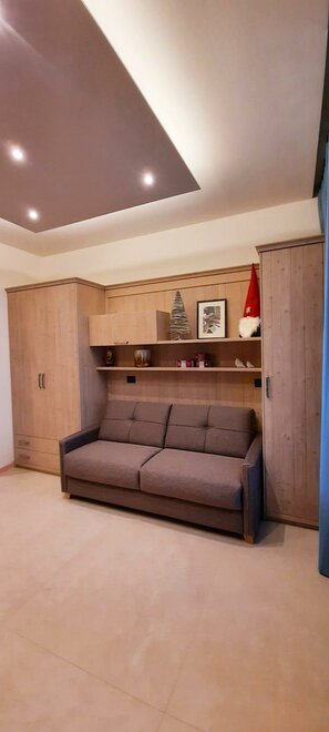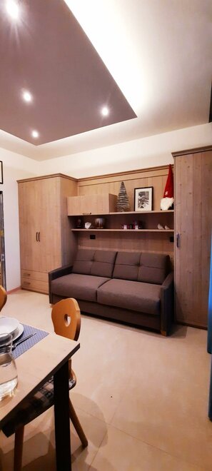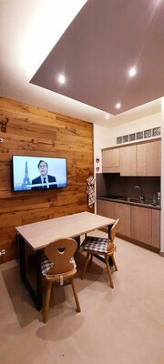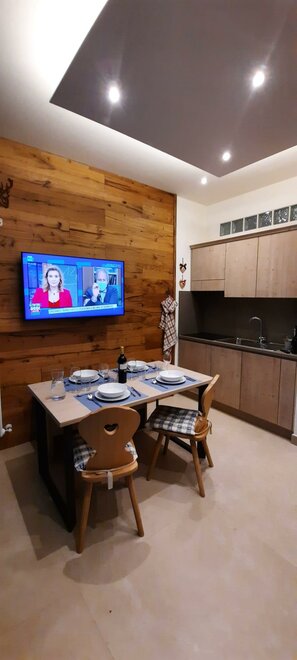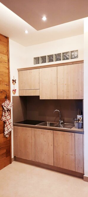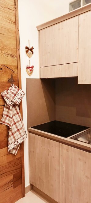 Nasi goście docenią uspokajający widok, jaki rozciąga się z prywatnego ogródka, gdzie będą mogli się zrelaksować i opalać się. Każda przestrzeń została zaprojektowana, aby zapewnić funkcjonalność i wygodę o każdej porze roku. Przy wejściu znajduje się szafa, która może być używana jako składowisko nart i butów narciarskich.