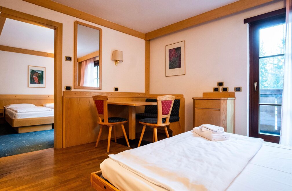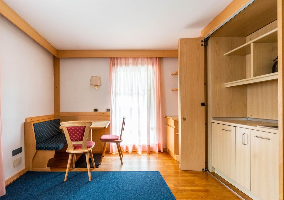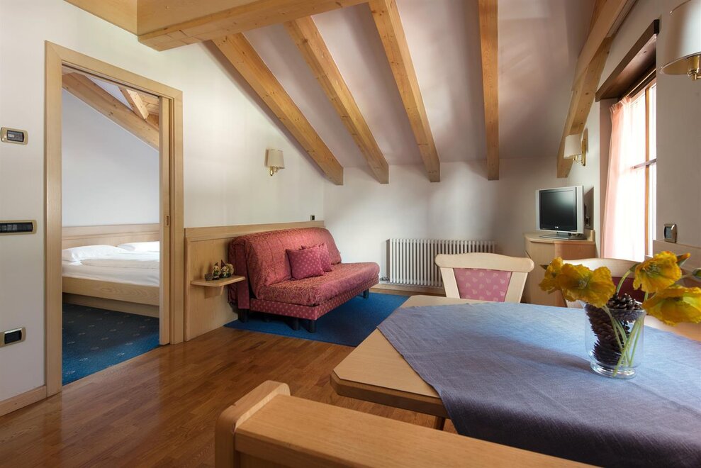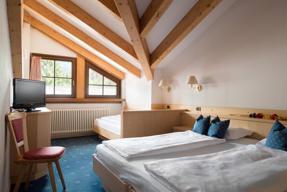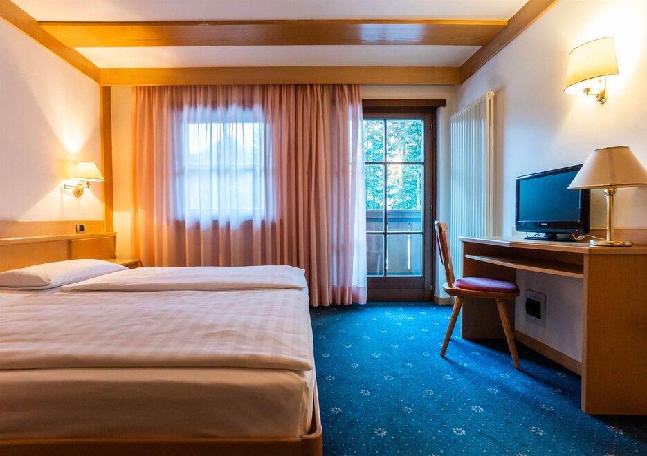 Typowy Garni B&B w Campitello di Fassa z widokiem na szczyty Sella i Col Rodella. Pokój dwuosobowy/podwójny oferuje klasyczne umeblowanie, łazienkę wewnętrzną oraz telewizję satelitarną, niektóre z nich mają balkon.