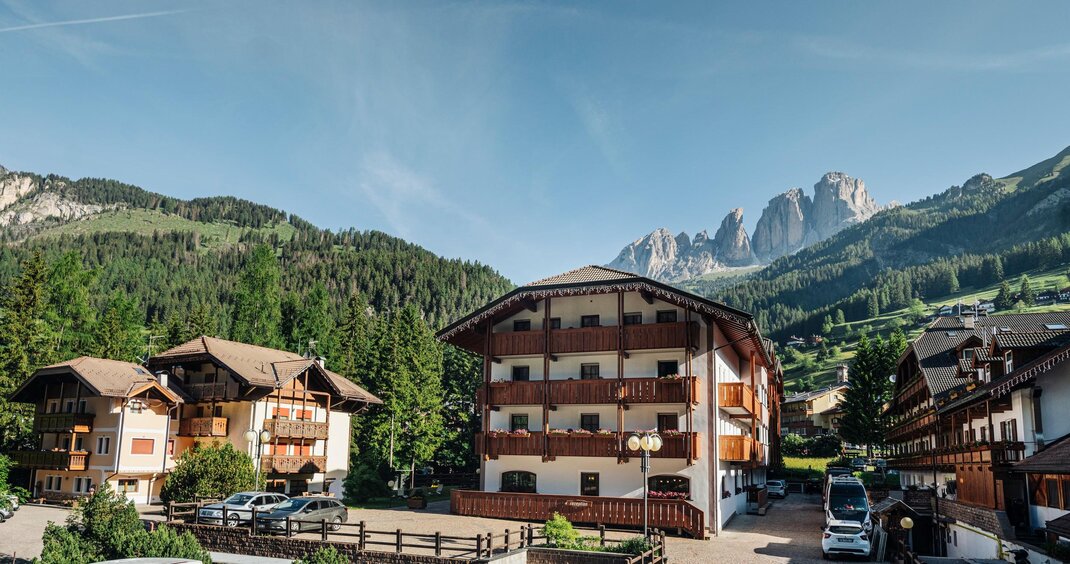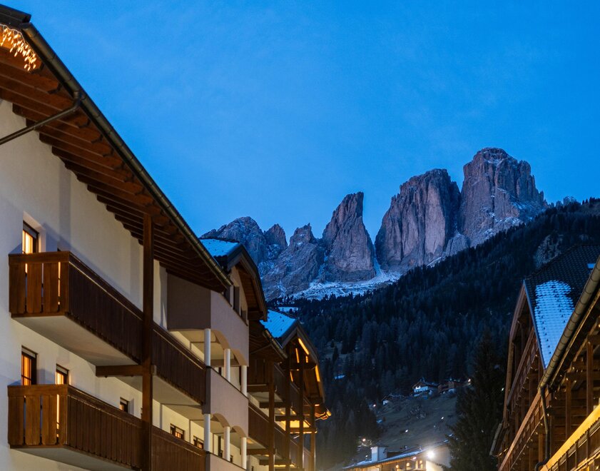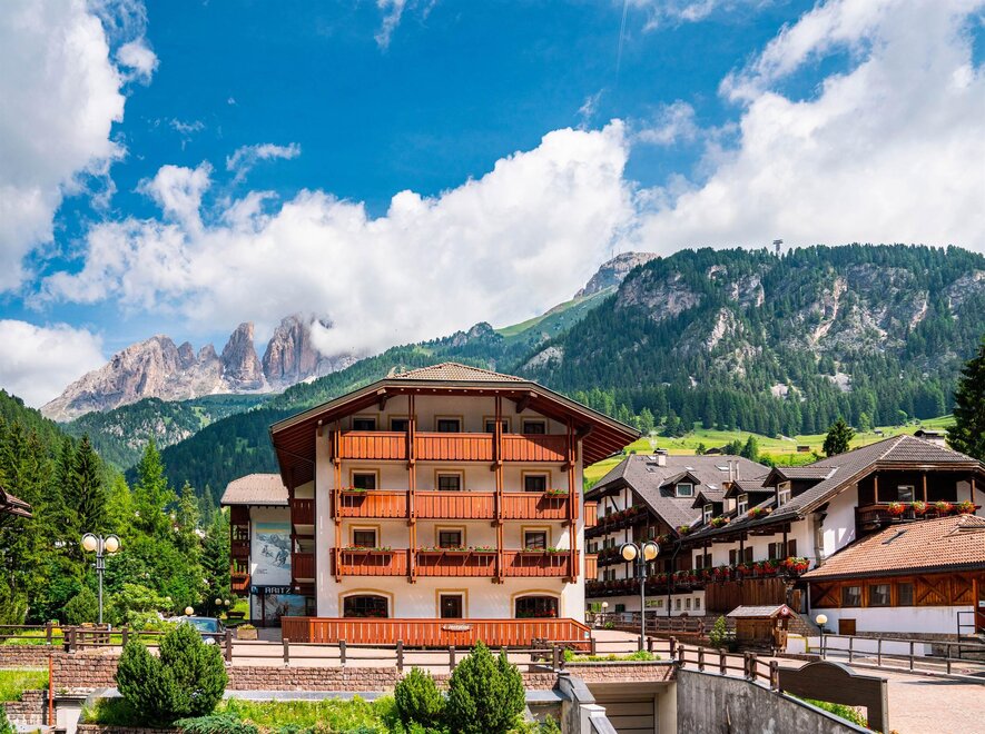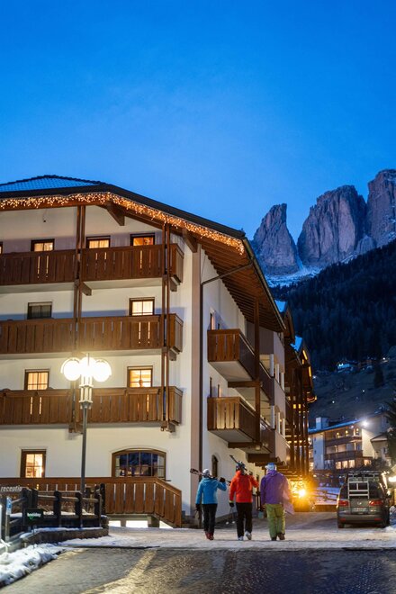 - Samochodem: Weź autostradę A22 i zjedź na Egna-Ora. Kieruj się w stronę Cavalese aż do wjazdu do Doliny Fassa. Kontynuuj na SS48 aż dotrzesz do Campitello di Fassa. Po dotarciu do centralnej rondy w miasteczku skręć w lewo w Via Pent de Sera, a znajdziesz nas w drugiej uliczce po prawej.