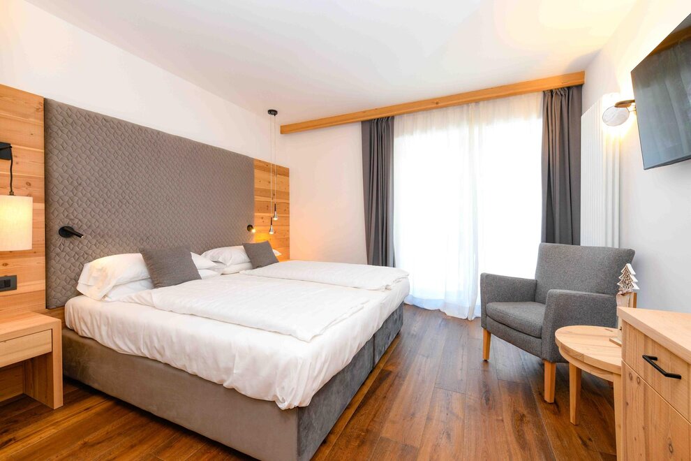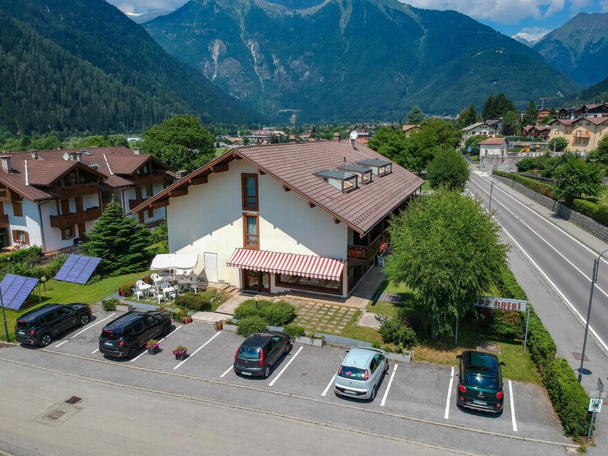 Pełen wdzięku, niedawno odnowiony hotel garnì oferuje zakwaterowanie ze śniadaniem oraz bogaty bufet na słodko i słono z produktami km zero i domowymi ciastami. Pensjonat przyjmuje naszych czworonożnych przyjaciół i jest idealną bazą wypadową na wycieczki rowerowe. Przestronne i przytulne pokoje różnego typu, wszystkie z ogrodem lub balkonem, TV, SKY, BEZPŁATNYM Wi-Fi, sejfem, prywatną łazienką z prysznicem. Zewnętrzny parking, oraz możliwość zadaszonych miejsc dla motocykli. Przechowalnia na narty i rowery wewnątrz budynku. Możliwość wypożyczenia rowerów elektrycznych. Umowy z różnymi restauracjami w okolicy. Położony w spokojnej okolicy, kilka kroków od ścieżki rowerowej, centrum sportowego i placu zabaw, 800 metrów od centrum Pinzolo i około 1 km od wyciągów narciarskich.
