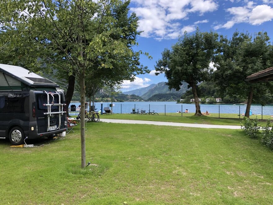 Nasz kemping znajduje się nad brzegiem Jeziora Ledro.