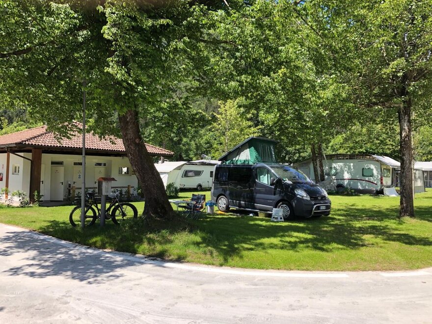 Malowniczy, bogaty w cień, z przestronnymi miejscami z przyłączem elektrycznym, wszystkie usługi z ciepłą wodą, pralką, suszarką, prasowalnią, barem, przekąskami, śniadaniami; wszystko w rodzinnej, przyjaznej i profesjonalnej atmosferze. Place zabaw dla dzieci, basen dla dzieci z leżakami.