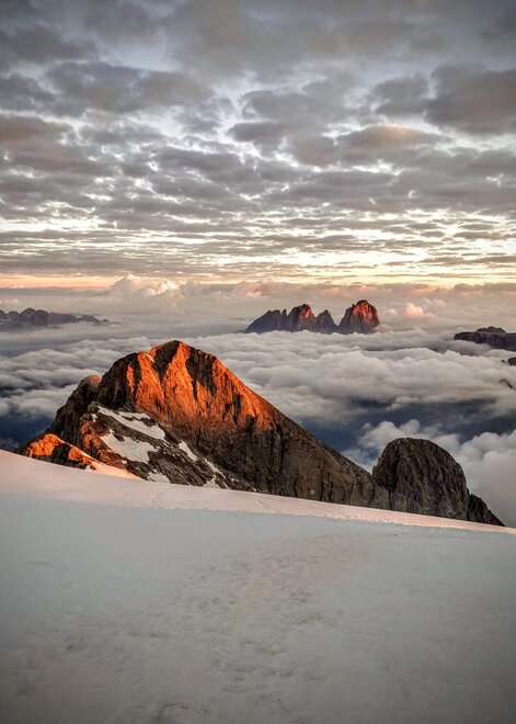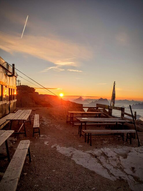 Schronisko Capanna Punta Penia nie oddaje się łatwo: jeśli przybyłeś z północy, wspiąłeś się wzdłuż lodowca; na zachodzie znajduje się via ferrata; jeśli przybyłeś z południa, należy ci się brawa, pokonałeś jedną z najbardziej wymagających ścian Dolomitów. To schronisko jest punktem docelowym. Również dlatego, że nie da się iść wyżej. Jesteś na szczycie Marmolady, najwyższej góry Dolomitów. Nagrodą jest niezrównany widok na dolomickie grupy, które są u twoich stóp. Spanie tutaj w wietrzną noc, w tej chacie przymocowanej do skały stalowymi linami, może być emocjonującym przeżyciem, ale rano odkryjesz, że na wysokości 3.300 metrów często budzi się wyżej niż chmury. Otwarcie Od maja do początku listopada Przed wycieczką zaleca się sprawdzenie rzeczywistego otwarcia schroniska kontaktując się z zarządcą Trasy Ze szczytu Marmolady, najwyższej góry Dolomitów, można oczywiście tylko schodzić. Ale ci, którzy mają jeszcze energię (a zwłaszcza umiejętności alpinistyczne i odpowiedni sprzęt), mogą dotrzeć do Punta Rocca (trudność EEA), na lekko niższej wysokości, wzdłuż grani Królowej, gdzie przyjeżdża kolejka linowa, która wjeżdża z Malga Ciapela.