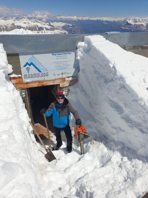 Aurelio Soraruf, właściciel, i Carlo Budel, zarządca, zarządzają Capanna Punta Penia z pasją, miłością i profesjonalizmem, wśród niespodzianek, burz i wspaniałych widoków.