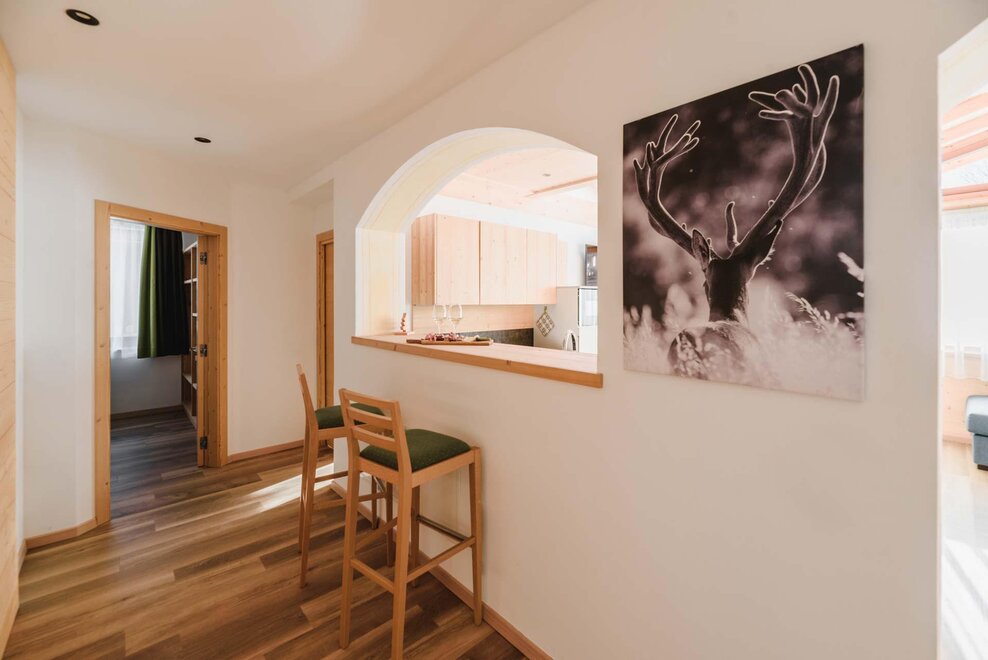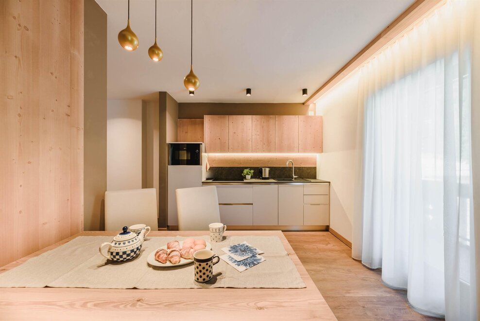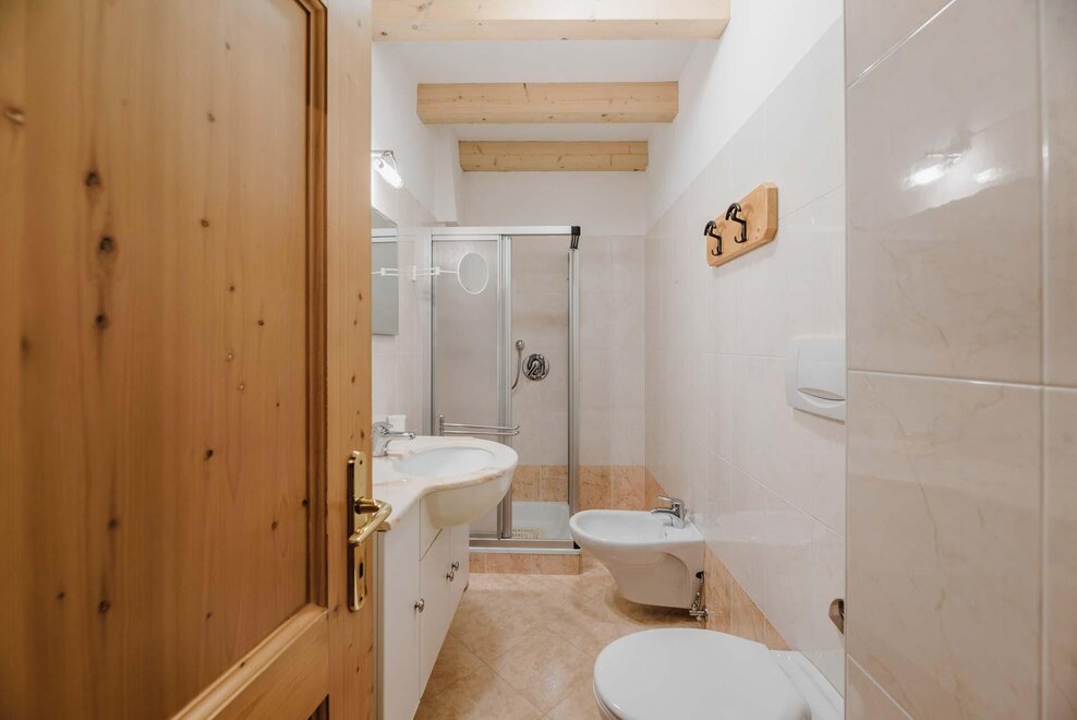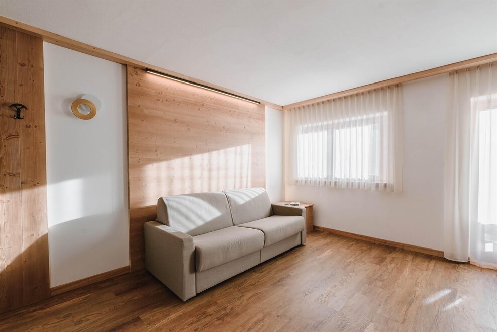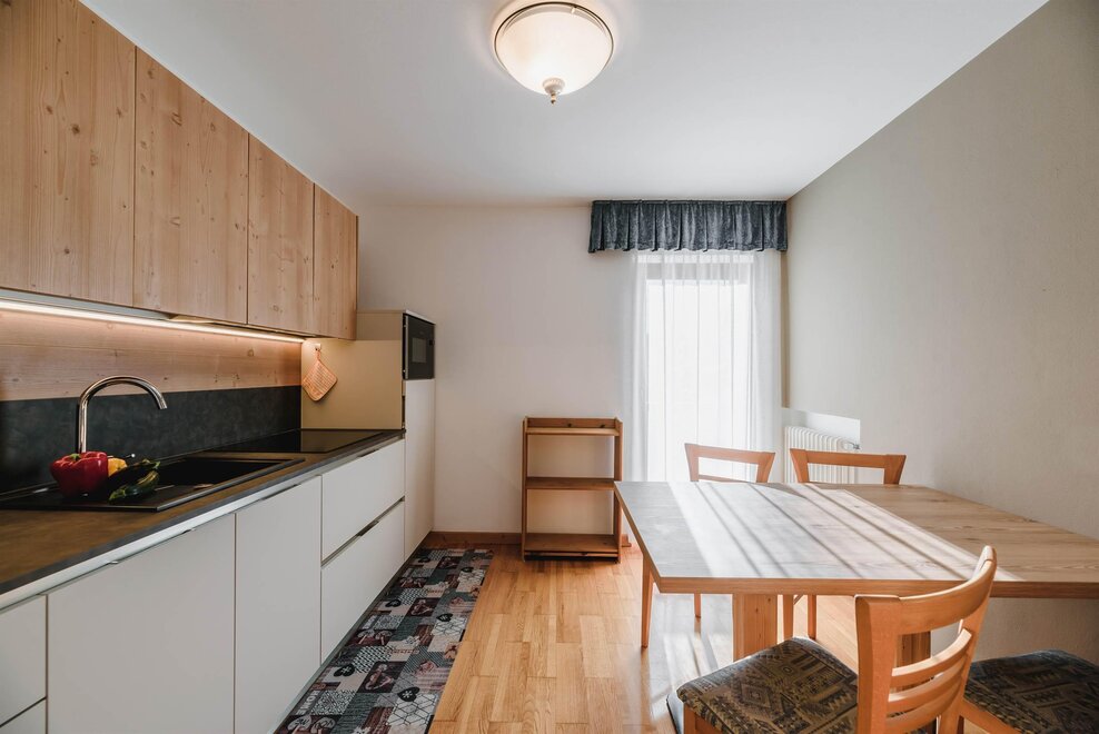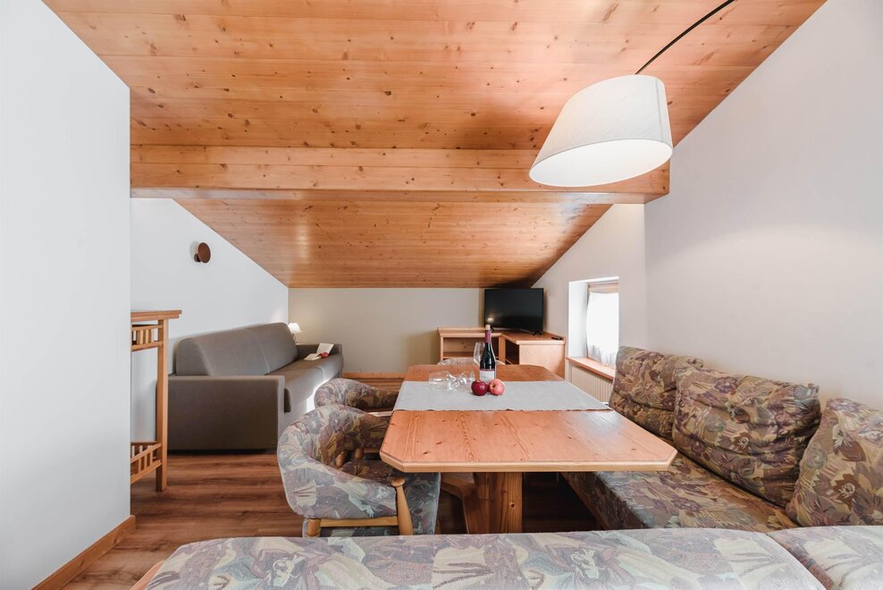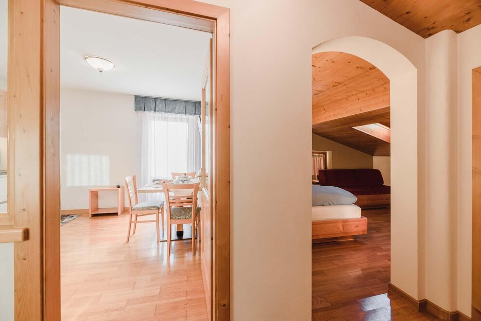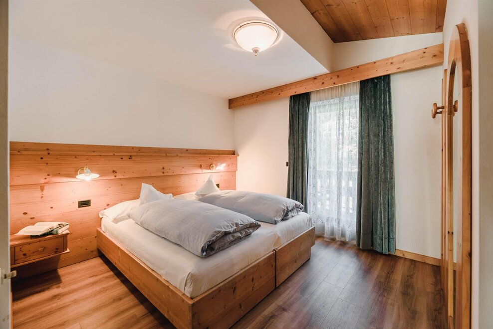 Idealne dla rodzin lub par przyjaciół, mieszkanie o powierzchni 90 m² położone na parterze, przystosowane również dla osób z niepełnosprawnościami, jest umeblowane w drewno z cirmolo bio i składa się z 2 sypialni małżeńskich lub pojedynczych, salonu z rozkładaną sofą i aneksem kuchennym, 2 łazienek, z czego jedna znajduje się w sypialni, panoramicznych okien. Sejf i Wi-Fi na światłowodzie.