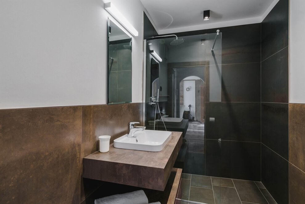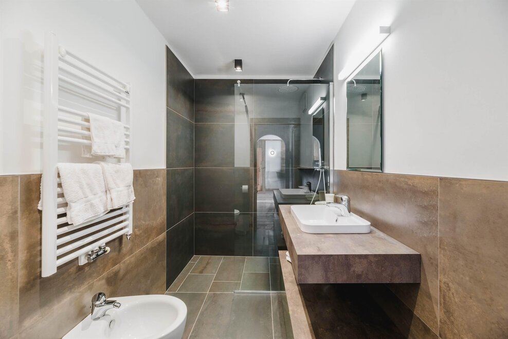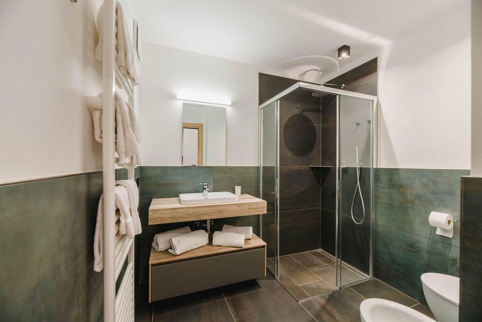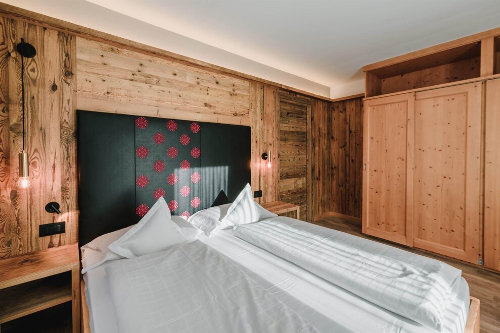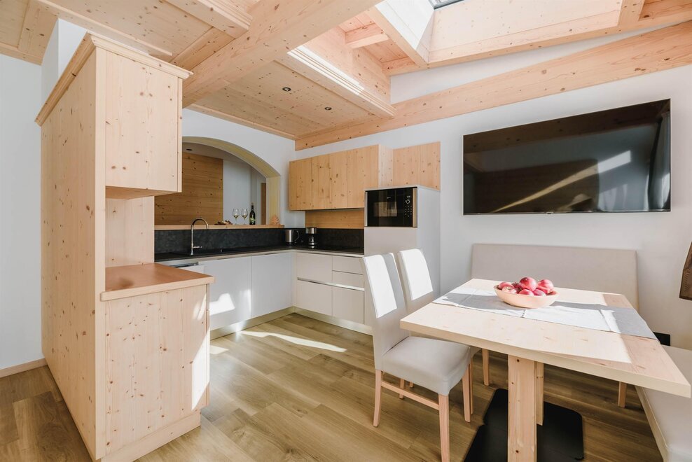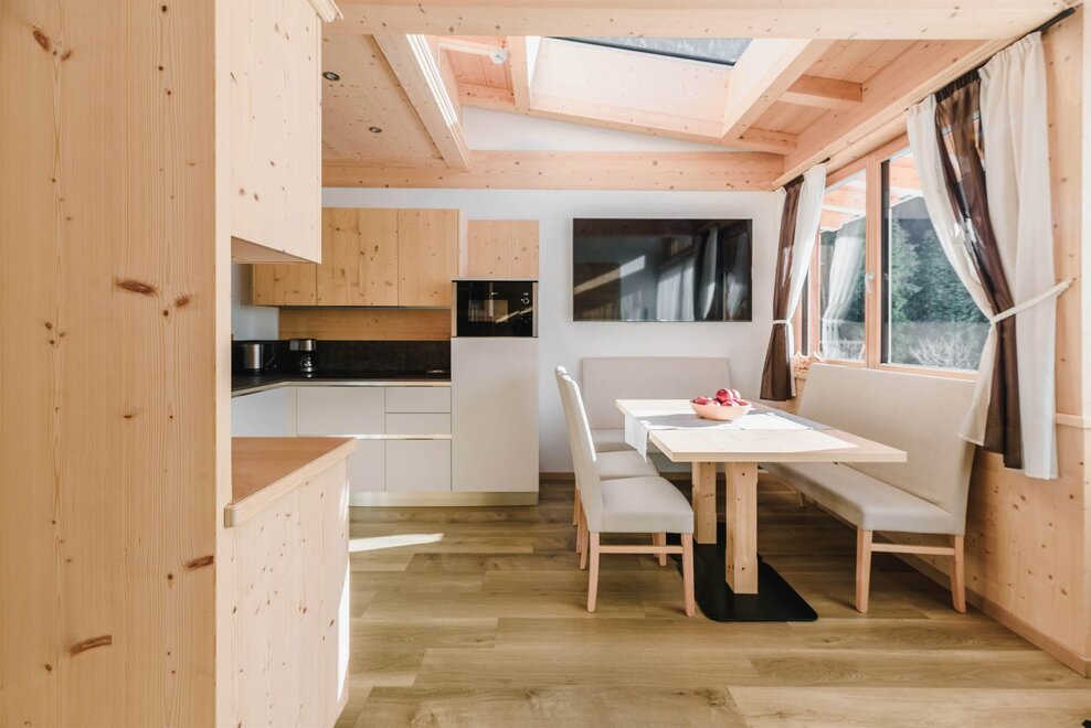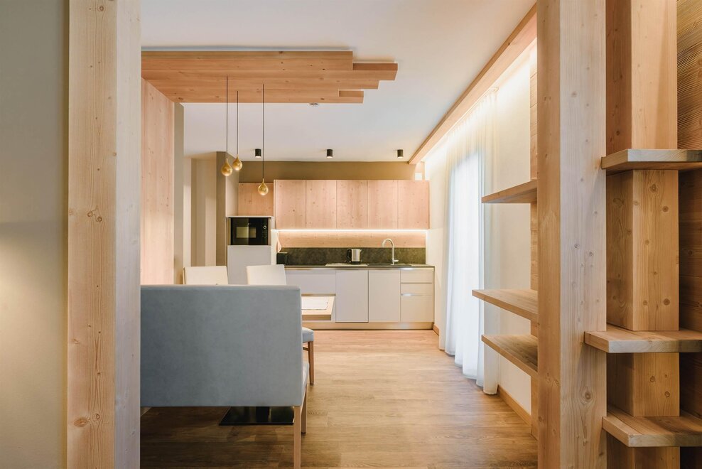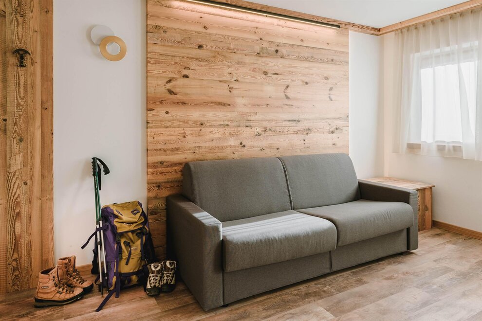 Idealne dla rodzin lub par przyjaciół, mieszkanie o powierzchni 90 m² położone na parterze, przystosowane również dla osób z niepełnosprawnościami, jest umeblowane w drewno z cirmolo bio i składa się z 2 sypialni małżeńskich lub pojedynczych, salonu z rozkładaną sofą i aneksem kuchennym, 2 łazienek, z czego jedna znajduje się w sypialni, panoramicznych okien. Sejf i Wi-Fi na światłowodzie.