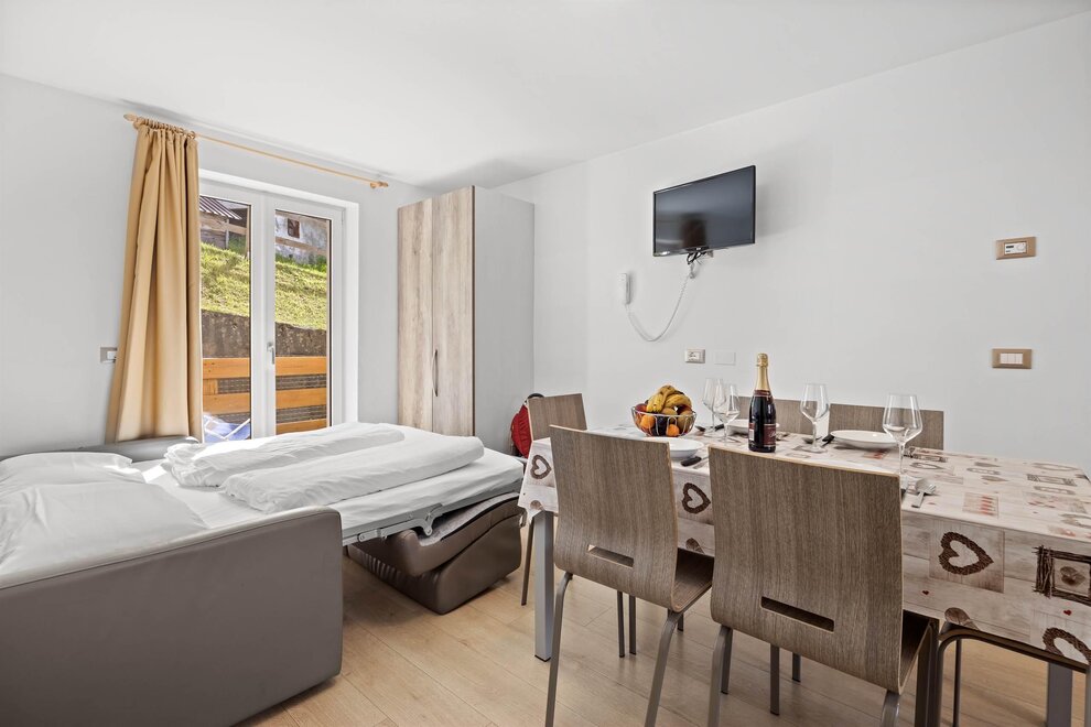 The price of the offer includes bed linen and towels, final cleaning, consumption, wi-fi connection and access to all common services. The apartments have blankets and pillows, telephone, TV, hairdryer, microwave, furnished and equipped kitchen, kitchen cleaning kit, toiletries, safe. For a fee: internal restaurant (also take-away, 0462231117 or 368294458), ski rental and courses (0462231707 or 3487966612), bathrobe, stroller, baby carrier and bicycle backpack hire, coin-operated laundry and ironing room and garage (€10.00 per day). In some apartments, you can stay with a pet weighing under 25 kg for an additional fee of €10.00 per day.