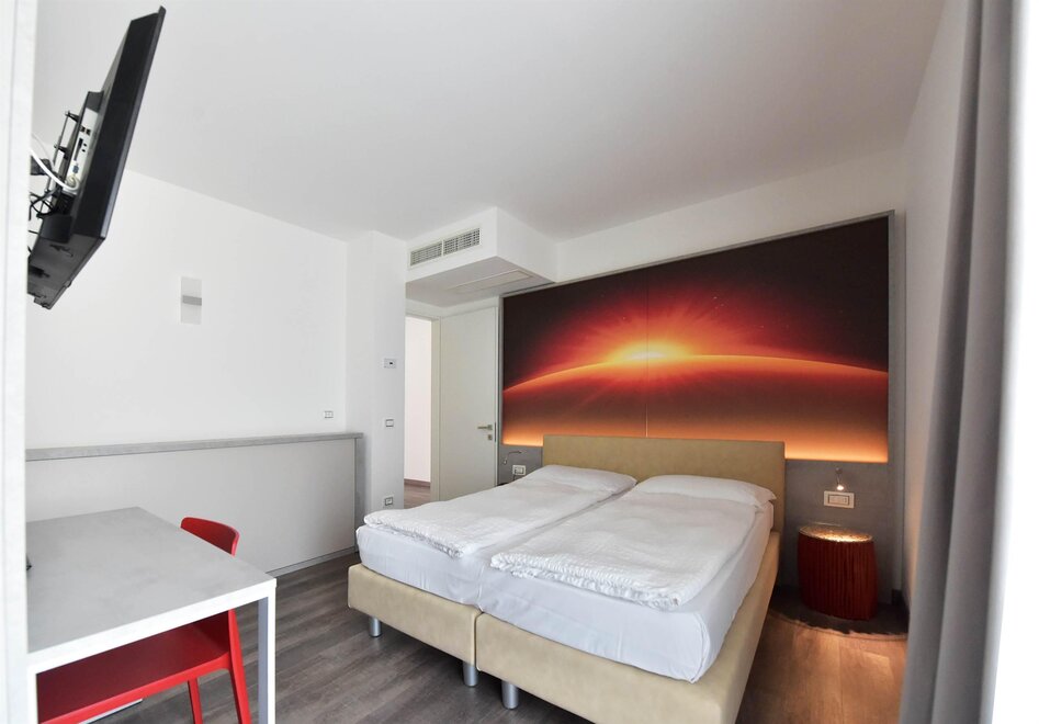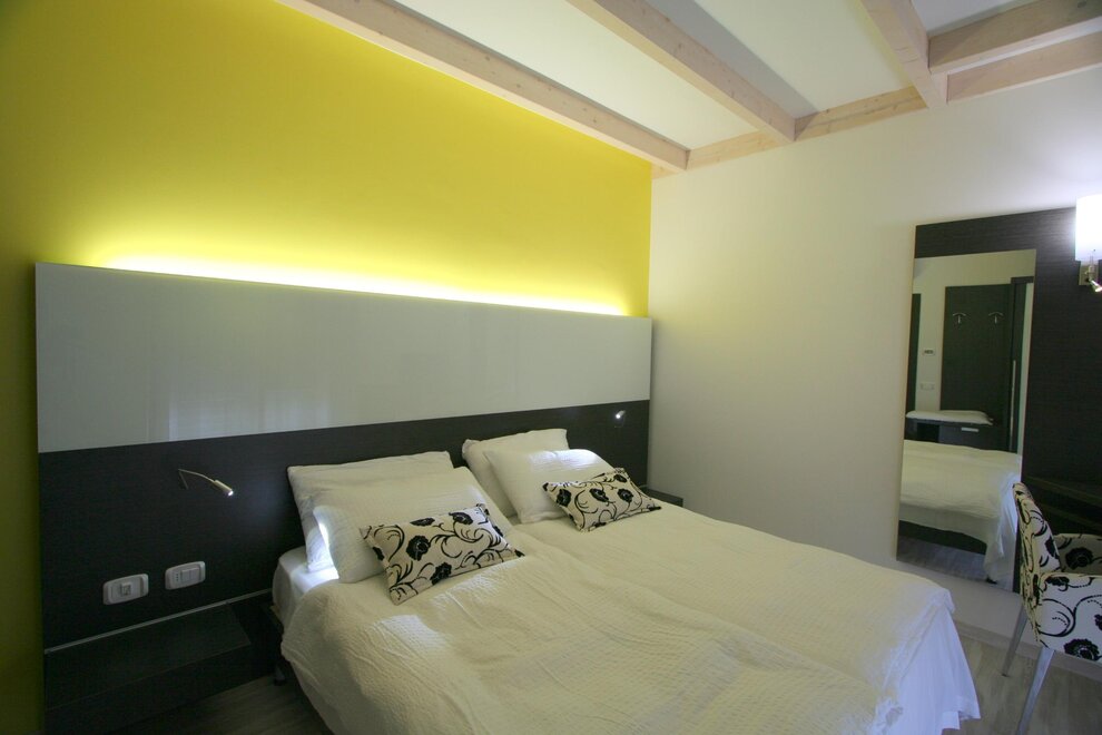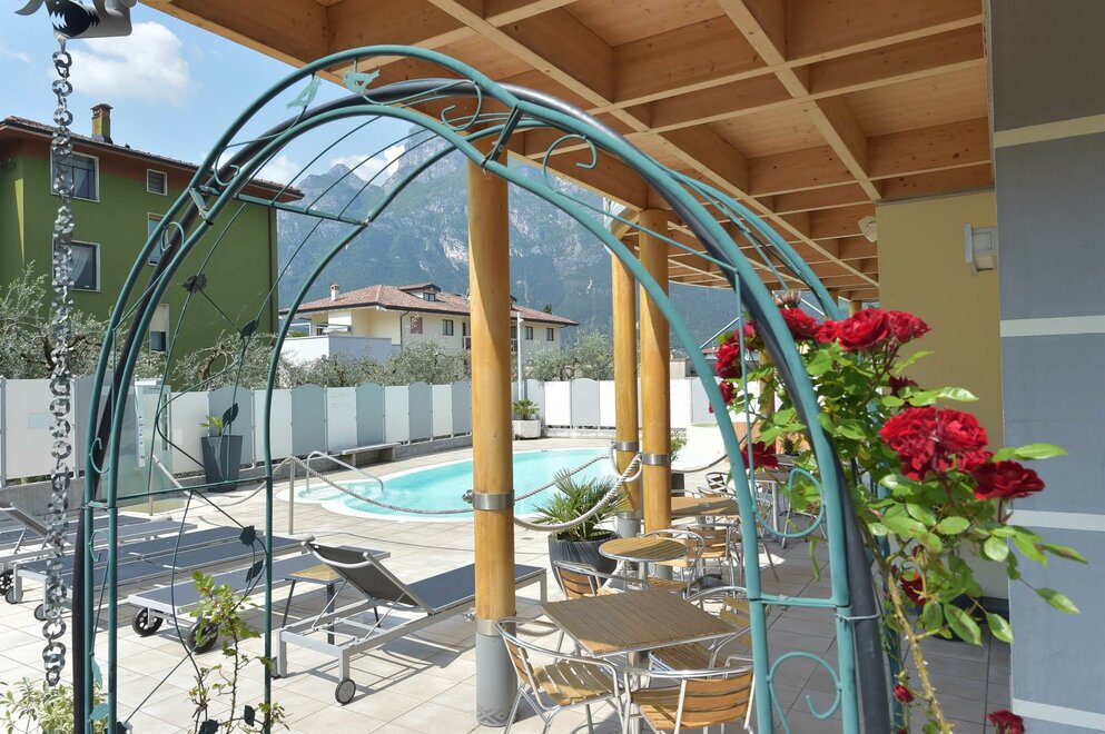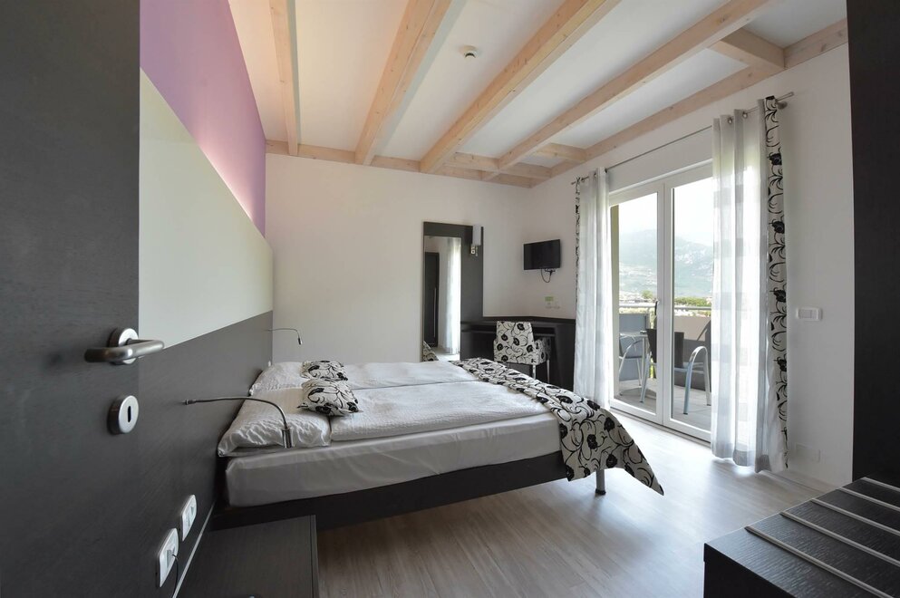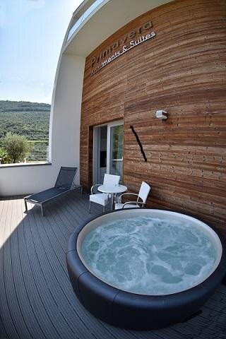 The Eco-Hotel Primavera, was planned and built entirely using materials and construction techniques that aim to preserve and produce energy, by drawing it from the surrounding environment. The thermal insulation and the use of the best heating system technology are the main pillars on which our belief and our mission to save energy are based. The Eco-Hotel Primavera is the first Ecological Hotel on Lake Garda, entirely built with certified FSC for the safeguard of our forests. The environment is refined and guests will find the best comforts, as we are convinced that small attention to detail makes a great difference. This is a structure on a human scale, immersed in the greenery of an olive grove, that will provide guests with a healthy atmosphere, full of respect for the surrounding natural environment. The hotel has 14 marvellous and refined rooms and 5 apartment-suites, all with balcony and all of them elegantly built and furnished with certified wood. They have all the modern comforts and air conditioning to allow guests to spend their dream holiday in total relaxation. The swimming pool, with Jacuzzi and cervical-fall, will give you an intense feeling of well-being even after a very tiring day, preparing you for the many sporting activities around you. The hotel has also a sun lounge area reserved and fully equipped with a cocktail bar, for those who prefer to just idle away the time. A guarded underground garage is available for cars and motorbikes. There is also a storeroom for bikes and windsurf boards with security video cameras. With our love for nature and warm hospitality, we will be very happy and eager to welcome you to our Eco-Hotel Primavera.