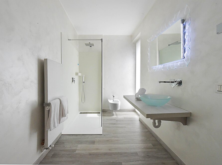 Nowiutki, wyposażony w taras z widokiem na gaj oliwny i wannę z hydromasażem, stworzony i urządzony z niezwykłym smakiem i elegancją, inspirowany swoim tematycznym żywiołem, z dbałością o każdy detal designu.