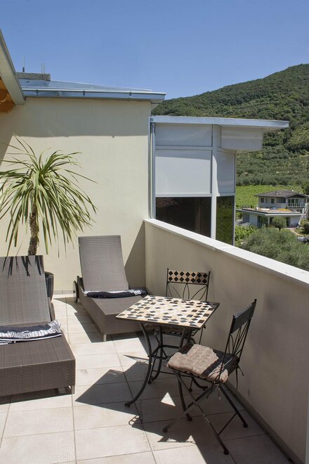 Cieszcie się wspaniałym widokiem na jezioro Garda i delektujcie się świeżą lampką trentinskiego szampana na tarasie z widokiem na zachwycający gaj oliwny Monte Brione.