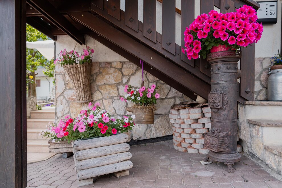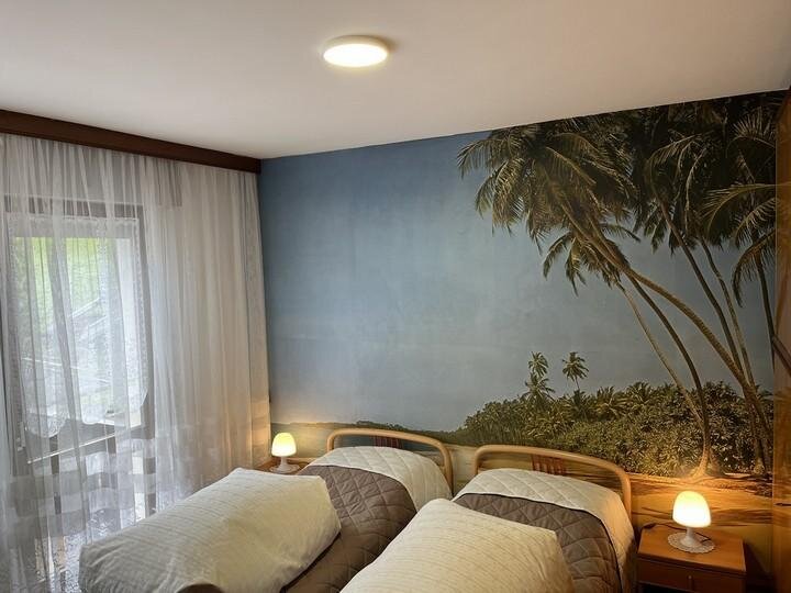 Dostępny jest wygodnymi drewnianymi schodami zewnętrznymi. Latem budynek jest dobrze nasłoneczniony i znajduje się w spokojnej okolicy.Wyposażenie pokoju