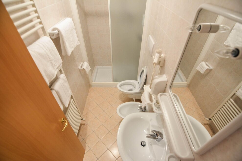 bidet, prysznic, WC, bieżąca woda ciepła/zimna, umywalka, stołek prysznicowy