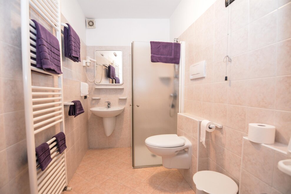 stołek prysznicowy, WC, bidet, umywalka, prysznic, bieżąca woda ciepła/zimna