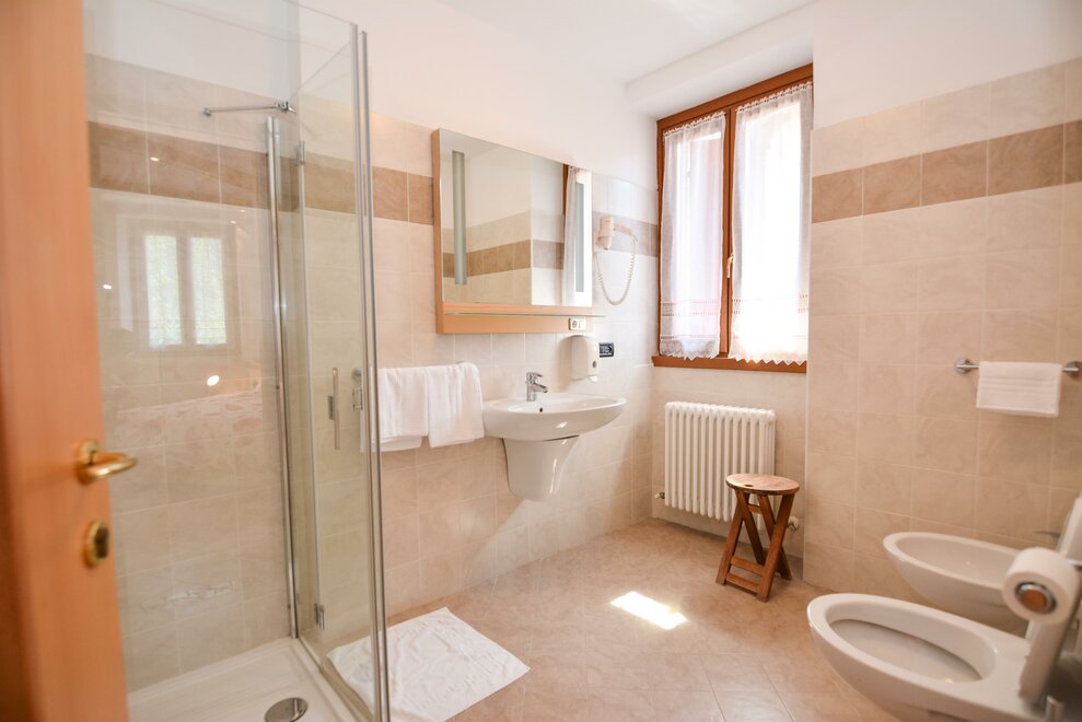 Łazienka prywatna z oknem dla s.martino, z prysznicem, ręcznikami, suszarką do włosów