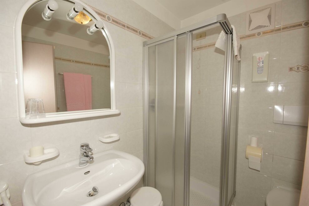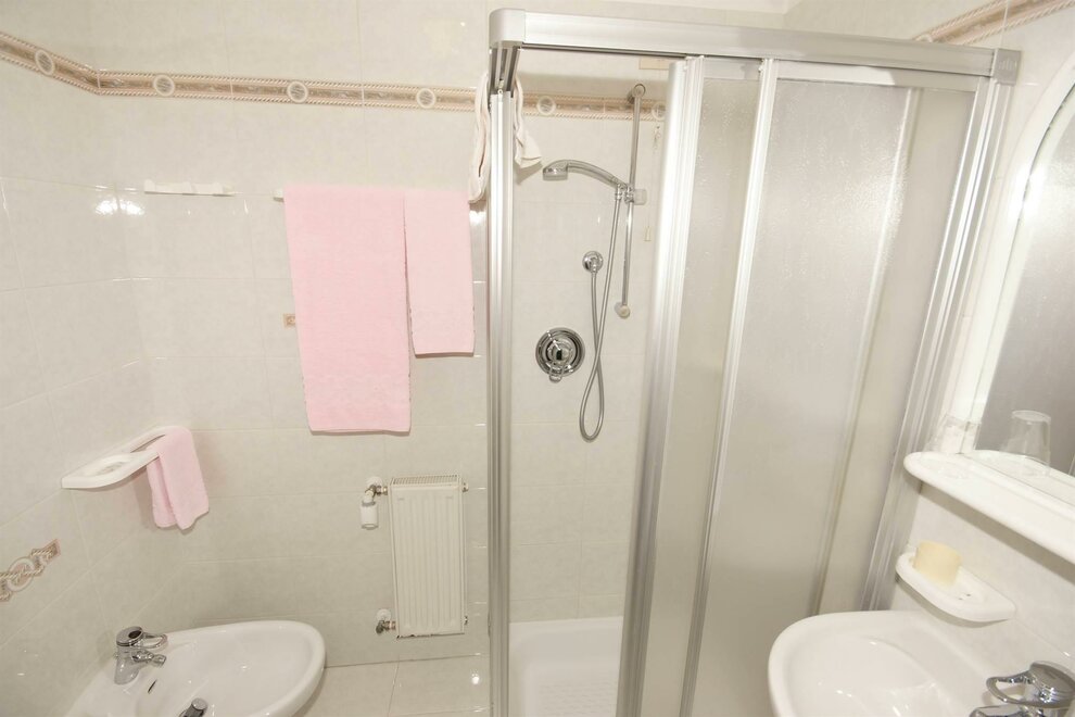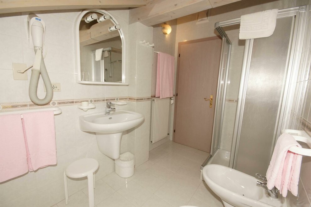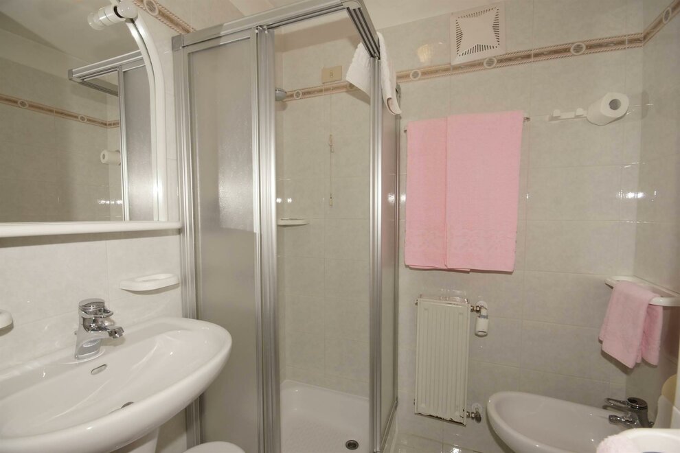 Łazienka z prysznicem, umywalką, WC, bidetem i suszarką do włosów.Wyposażenie pokoju