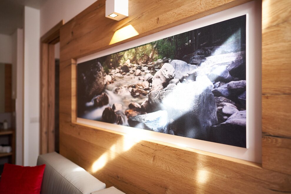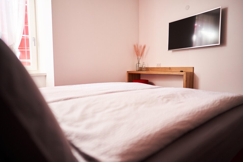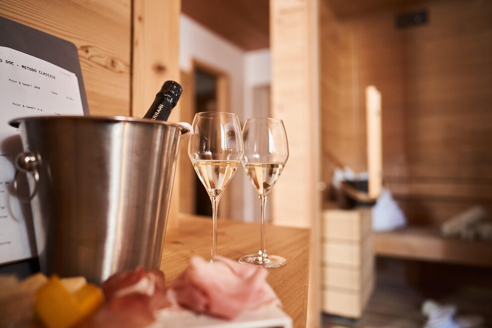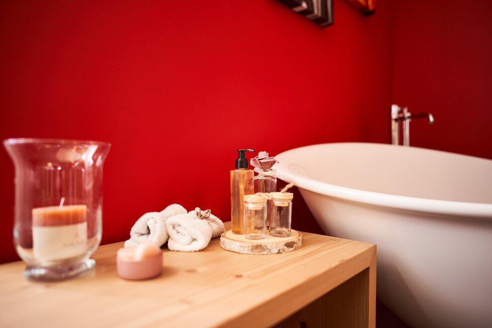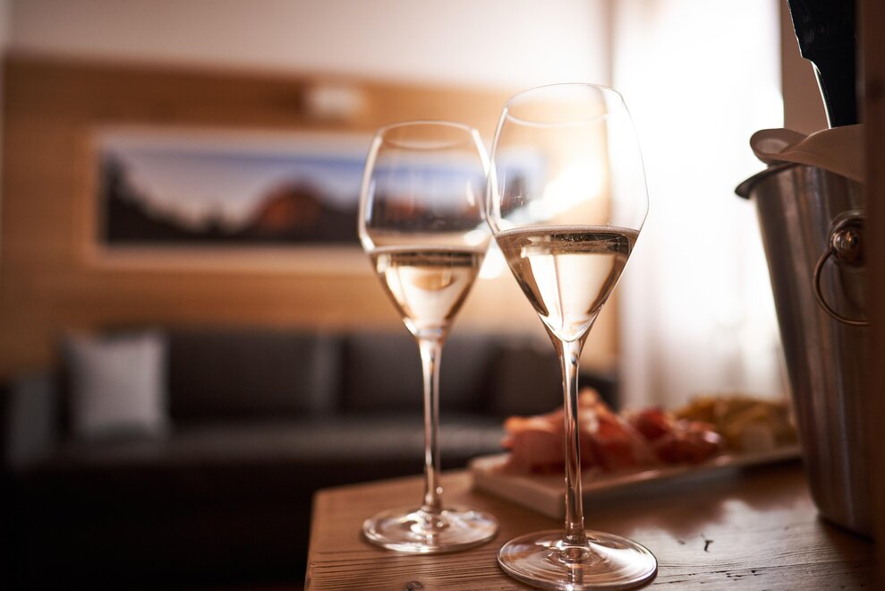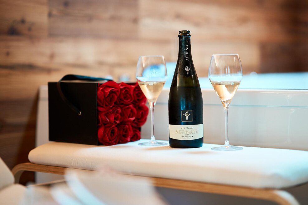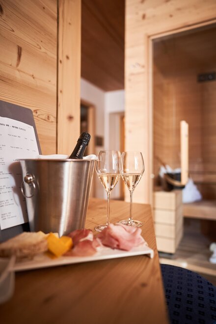 Pokój o powierzchni około 60 m² z podłogami i meblami drewnianymi, łóżko podwójne z materacem DORELAN z widokiem na góry i Zamek Thun, open space z BIO sauną Hydrosoft dla dwóch osób oraz wanną z hydromasażem dla dwóch osób z systemem utrzymania temperatury, własna łazienka z dużym przeszklonym prysznicem, oświetlona garderoba, sejf, minibar, kącik herbaty, telewizor LED i darmowe Wi-Fi.