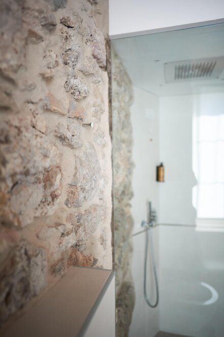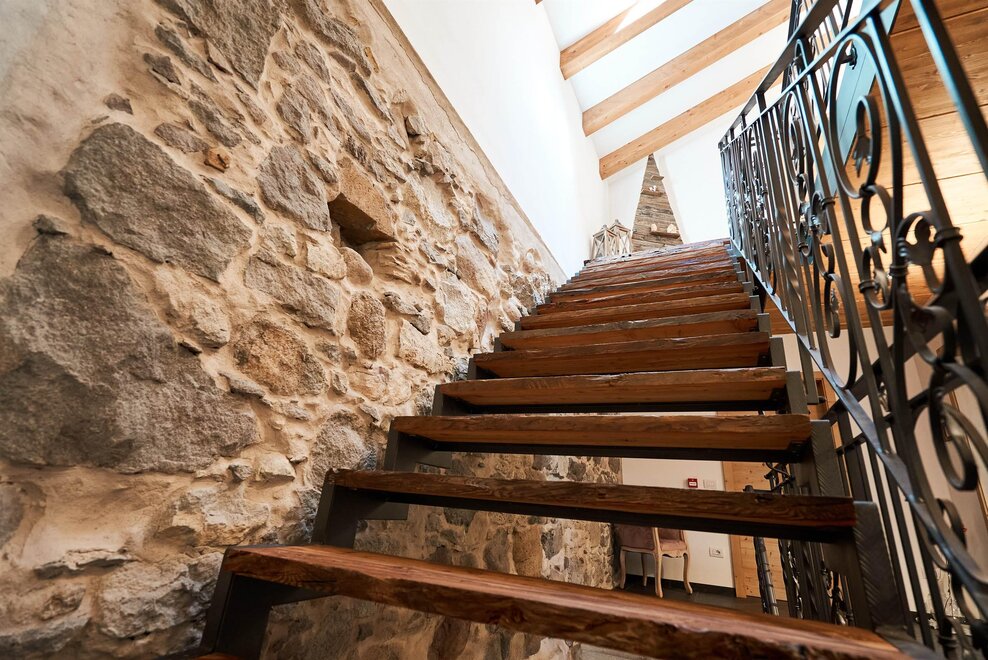 Budynek, będący efektem żmudnej renowacji historycznej przędzalni z XIX wieku, zachował mury z naturalnego kamienia oraz drewniane stropy z widocznymi belkami, co nadaje wnętrzu ciepło i światło, w pełnej harmonii z nowoczesnym umeblowaniem.