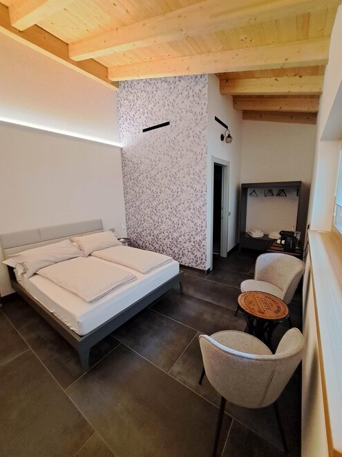 Pokój z 2 miejscami do spania wyposażony w 1 łóżko małżeńskie, prywatną łazienkę, ekspres do kawy i czajnik. Na zewnątrz, w prywatnej strefie, mały obszar do relaksu.