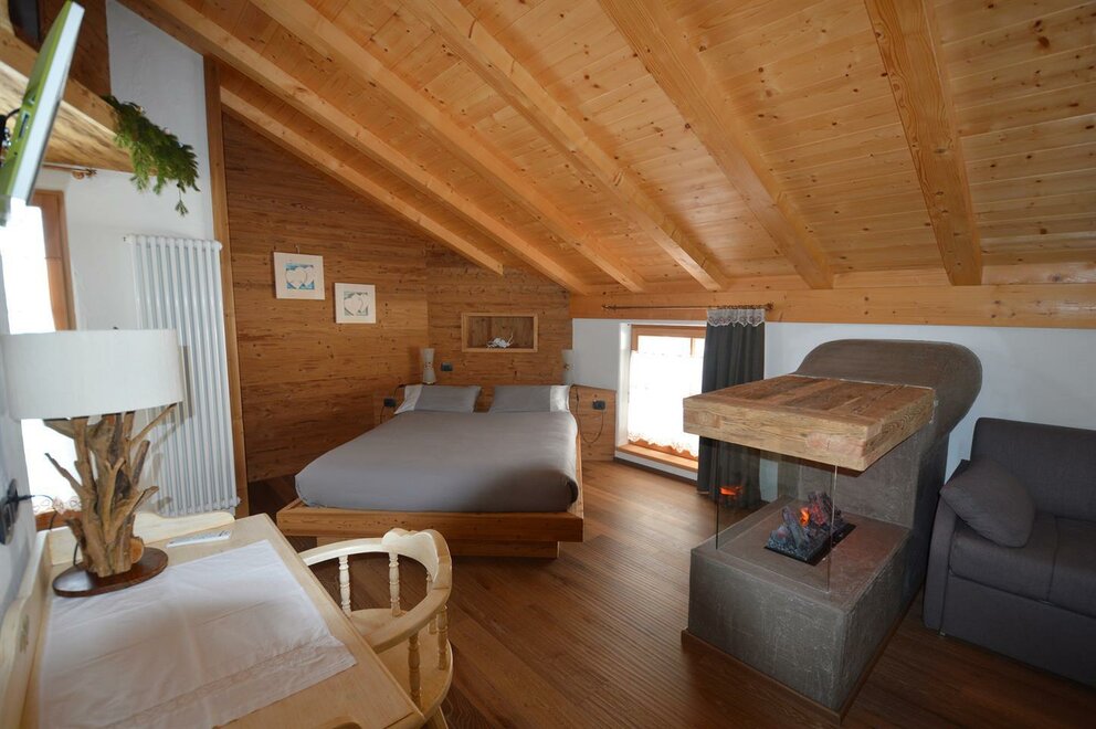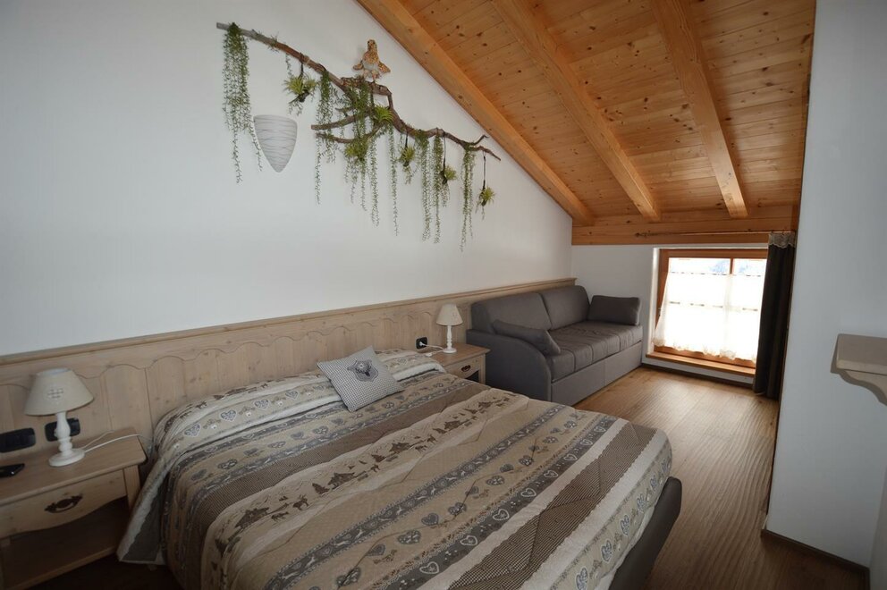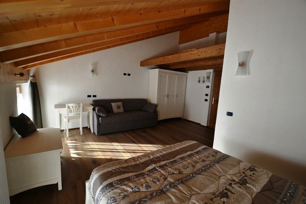 Wszystkie pokoje goscinne sa wyposazone w TV, internet , suszrki do wlosòw. Czesc pokoi jest 3-4 osobowa wiec idealne dla rodzin. Wykonczenie wewnetrzne tradycyjne a wiec podłogi w drewnie a sciany w stylu antycznym wg tradycji regionalnych. Pokoje w wystroju gòrskim wpisuja sie harmonijnie w atmosfere schroniska „Scoiattolo”... sprawiaja ze poczujecie sie jak w przytulnym domu, cieplym i przyjaznym. Pokoje sa bardzo wygodne wyposazone w detale i delikatne dekoracje nadaja nastruj i styl masywnej drewnianej konstrukcji. Niektore pokoje sa wyposazone w balkon, z ktorych mozna podziwiac przepiekne krajobrazy alpejskie, jak zachòłd słonca czy spacery jeleni po szlakach narciarskich i wiele inych ..