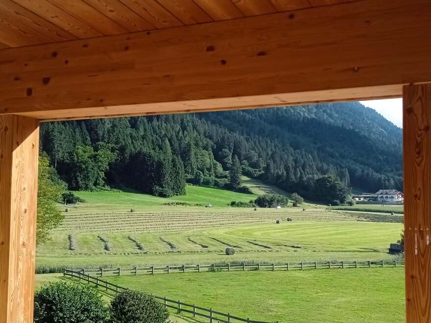Największym atutem tego pokoju jest spektakularne okno panoramiczne o długości nieco poniżej 5 metrów, usytuowane na południe, z widokiem na okoliczne doliny, z którego można podziwiać także Park Archeo Natura palafit w Fiavè, wpisany na listę światowego dziedzictwa UNESCO. Położony na pierwszym piętrze, ma także kilka przeszkleń, które prowadzą do wnętrza stodoły, co pozwala na utrzymanie kontaktu wzrokowego z różnymi typowymi dla tego miejsca wnętrzami oraz otoczeniem. Wewnątrz znajduje się wygodne łóżko małżeńskie oraz sofa, która może pomieścić od 2 do 4 osób. Łazienka, wyposażona w toaletę, bidet i umywalkę, jest oddzielna i ma przeszklone okno prowadzące do wnętrza stodoły, podczas gdy prysznic i druga umywalka są na widoku. Naturalne materiały, takie jak podłoga z larchowego drewna szczotkowanego, zapach jego esencji, tynki gliniane i słomiane, ręcznie wykonane detale oraz juta, sprawią, że doświadczycie głębokiego połączenia z terytorium.