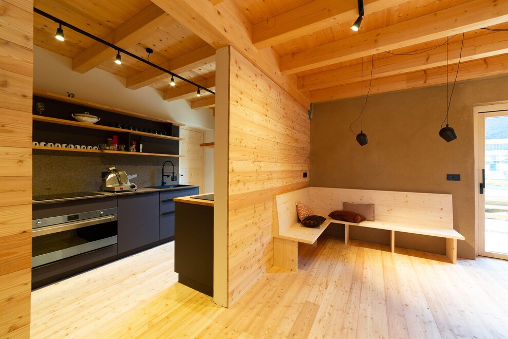 Usytuowane na parterze stodoły, ma okno wychodzące na południe z widokiem na dolinę. Wewnątrz znajduje się łóżko małżeńskie oraz sofa, które mogą komfortowo pomieścić od 2 do 3 osób. Łazienka, wyposażona w toaletę, bidet i umywalkę, jest oddzielona, podczas gdy prysznic i druga umywalka są na widoku. Naturalne materiały, takie jak szczotkowana podłoga z naturalnego lariksu alpejskiego, zapach jego esencji, tynki z gliny i słomy, ręcznie wykonane detale i juta, sprawią, że poczujecie głęboką więź z tym terenem