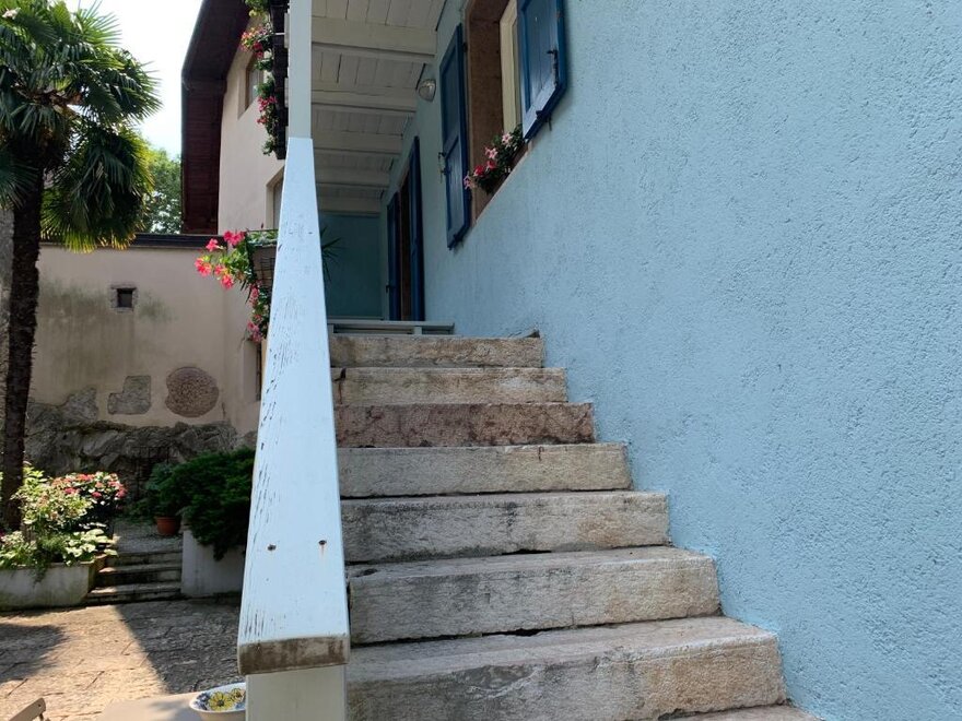 Po przyjeździe do Padergnone, niebieski dom znajduje się naprzeciwko Cassa Rurale Alto Garda.