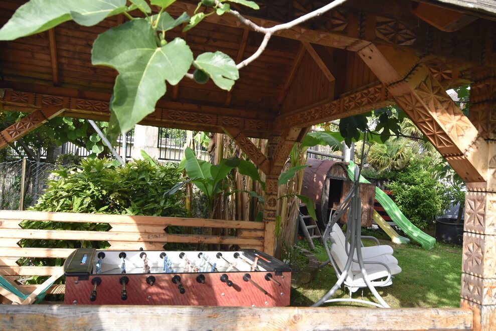 basen z tarasem słonecznym, piękny ogród, kort tenisowy, piłka nożna, koszykówka, siatkówka, ping pong, piłkarzyki oraz miejsce do grillowania z stołami