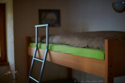 Łóżko w pokoju czwórkami bez łazienki: dwa łóżka piętrowe, prysznice i toalety wspólne