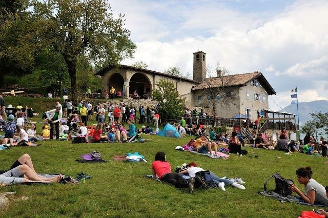 Spektakularny balkon nad Jeziorem Garda (niemal tysiąc metrów niżej), gdzie można się zrelaksować i skosztować typowych dań kuchni trentńskiej w miejscu od wieków poświęconym modlitwie i medytacji. Schronisko Monte Calino "San Pietro" było dawnym eremem w pobliżu kościółka San Pietro, kupionym w 1930 roku i odrestaurowanym przez SAT z Riva, która odnowiła obiekt w 1996 roku. Dostęp jest bardzo łatwy, przez dzielnice takie jak Ville del Monte czy Calvola, gdzie zaczyna się skok w przeszłość. A kiedy dotrzemy do schroniska, także dzieci znajdą swoje miejsce, na trawie z małym placem zabaw. Otwarcie Cały rok Przed wycieczką zaleca się sprawdzenie rzeczywistego otwarcia schroniska, kontaktując się z jego zarządcą Trasy Długie przejścia w kierunku Przełęczy Ballino, Favrio i Przełęczy San Giovanni al Monte są w zasięgu każdego turysty i wymagają około 4 godzin wędrówki (trudność E).