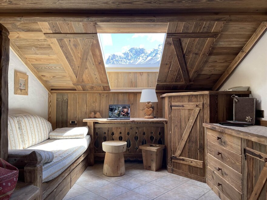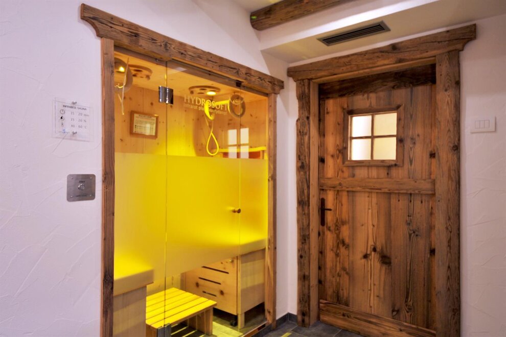 Our guests can access in the SPA, where big jacuzzi, steam bath, sauna, infrared sauna and cozy relax area. Games-room and laundry-ironing room are provided. Bedlinen and SPA set available for rent. At their disposal is also a welcoming lounge with garden view. For each apartment is available one car park in our garage, where are also provided a ski boot drier and some mountain-bikes for your summer excursions.