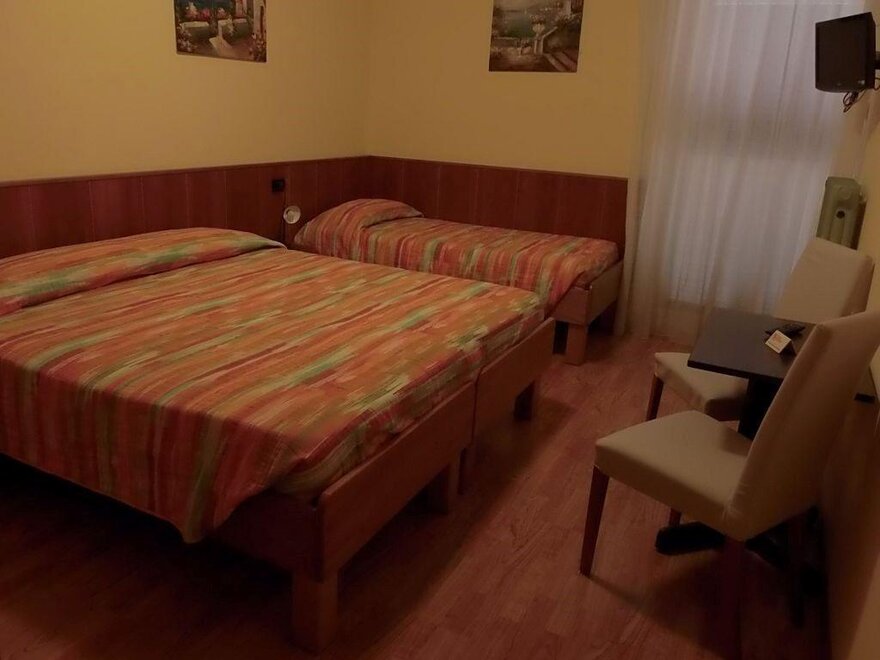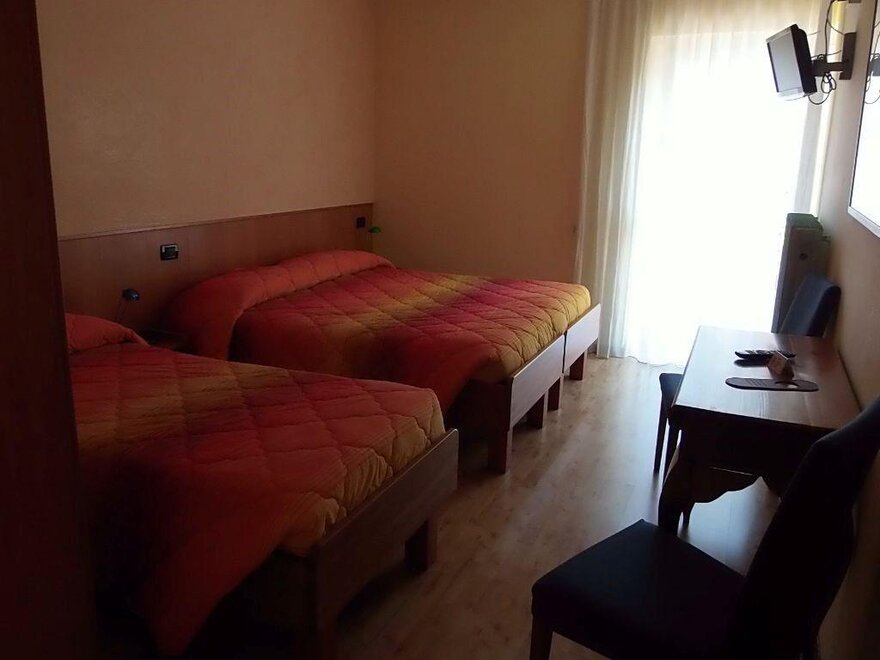 Pokój składający się z 1 łóżka małżeńskiego i 1 łóżka pojedynczego, lub 3 łóżek pojedynczych.