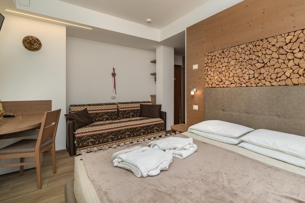 Hotel Wanda, z 70 lat działalności, zaprasza ciepłem rodzinie prowadzonym w odnowiony i wygodne. Hotel szczyci się tradycją zarządzania rodziny od 1939 roku, położony w pobliżu wszystkich głównych usług (apteki, kościół, supermarket, kiosk, przystanek autobusowy, itd..), Posiada pokoje z balkonami, wszystkie z usług, telefonicznych i telewizyjnych, a także salony, dzieci TV, gry i dorosłych bar, winda i mały, ale wygodny centrum odnowy biologicznej oraz własny minibus na transfery do wyciągów narciarskich i na wycieczki po Pinzolo, miasteczku w samym sercu Dolomitów i Adamello-Brenta Trentino w legendach i historii. Wi-Fi. Dopłata za garaż w wysokości 6,00 EUR za dzień.