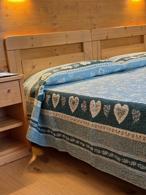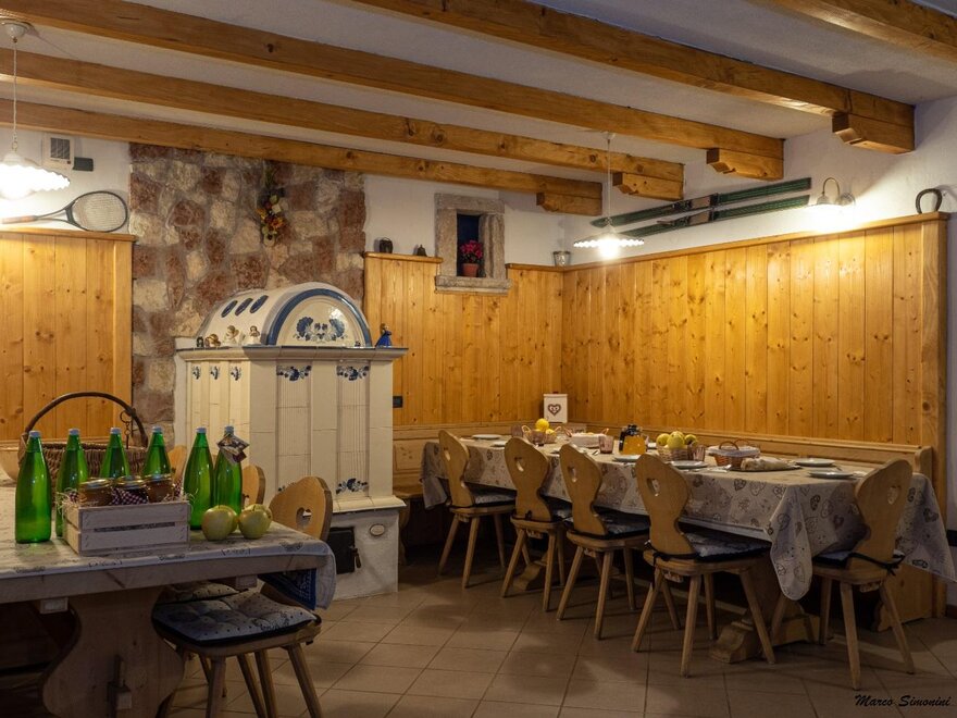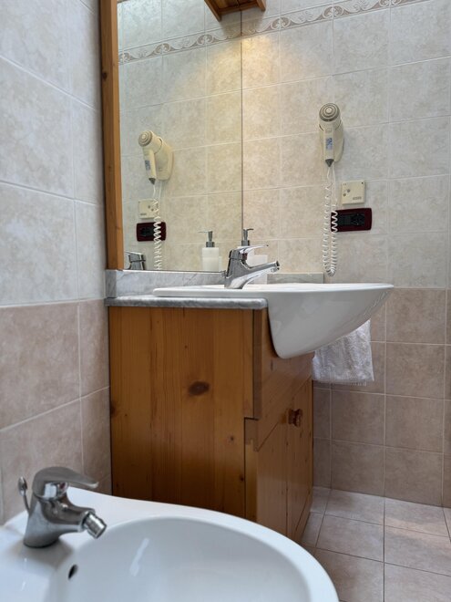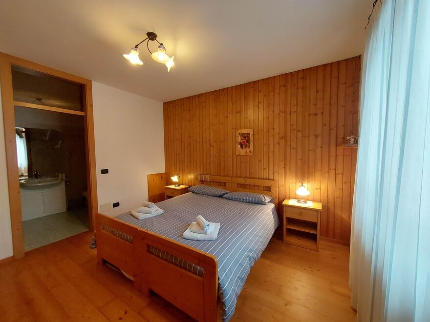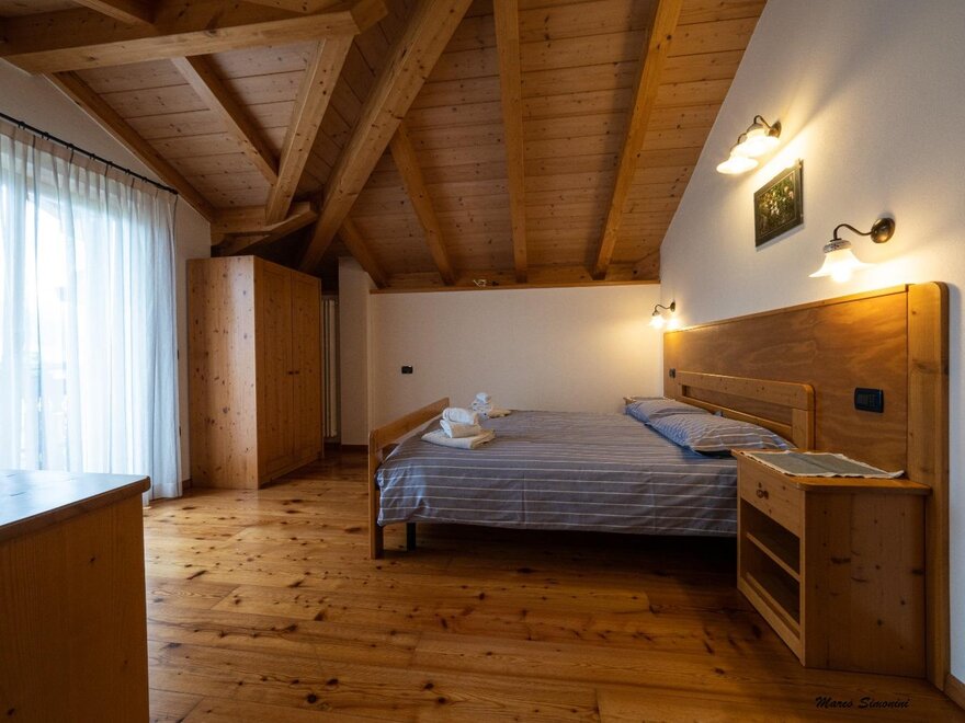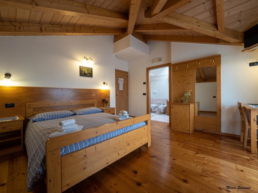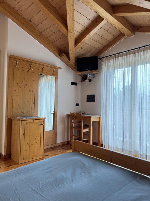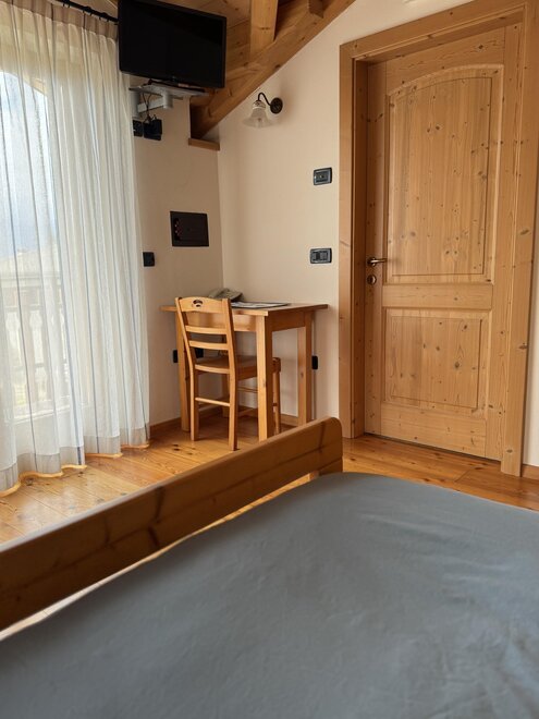 Podwójny pokój z balkonem z widokiem na Grupę Dolomitów Brenta, łazienka z prysznicem, suszarka do włosów, minibar, telewizor, sejf, Wi-Fi, pościel i ręczniki. Śniadanie wliczone w cenę oraz codzienne sprzątanie.