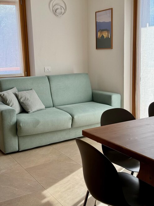 The two-room apartment has a living room with a kitchen, a bathroom , a double room , a balcony, a TV , Wi - Fi , bed linen and towels. There is a beautiful view of Brenta Mountains. Breakfast service on request.