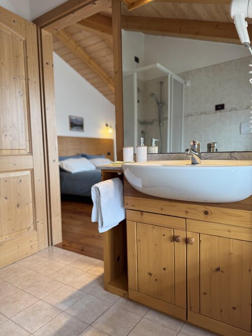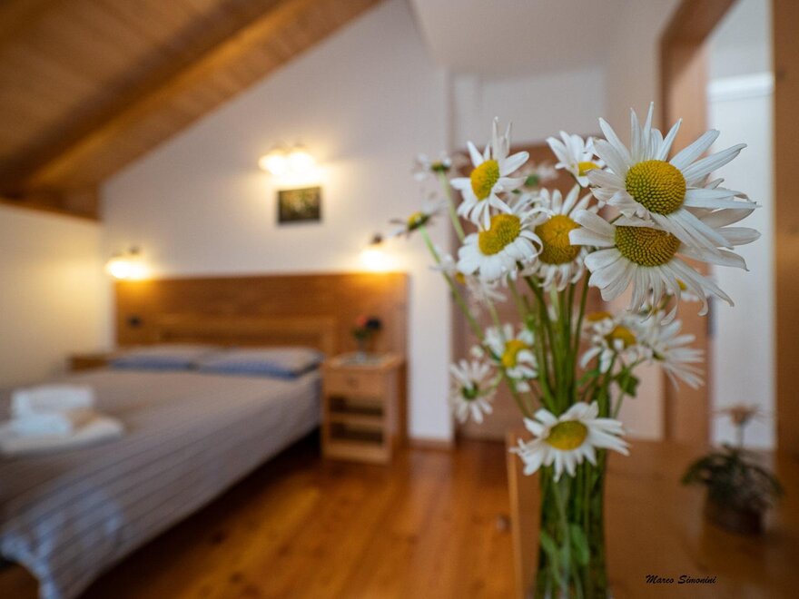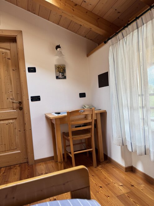 Double room with bathroom, hairdryer, TV, safe, Wi-Fi, bed linen and towels, furniture and wooden floors. Breakfast service is included and daily cleaning. The Agritur is sensible to energy conservation and solar panels and photovoltaic.