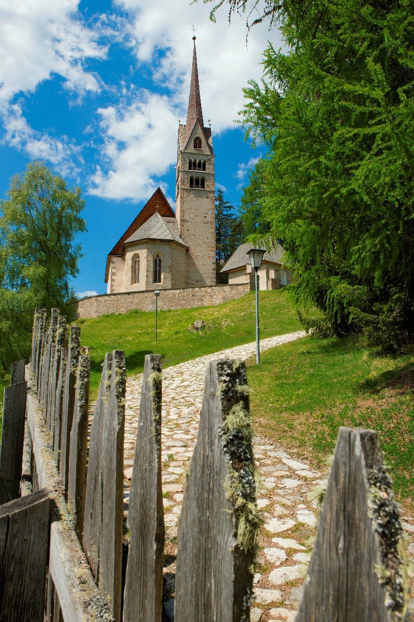 Vigo di Fassa, at the foot of King Laurin’s castle. The Trentino Dolomites is home to another “Most Beautiful Village in Italy”, a cradle of Ladin culture at the foot of the Catinaccio-Rosengarten Group, a UNESCO World Heritage Site, which legend has it was home to Laurin, king of the dwarves. At the entrance to the village of Vigo is the Ladin Museum, whose collections house the heritage of the material culture and traditions of the Ladins of Fassa. Vigo has many hamlets, one of which is Tamiòn, a small inhabited centre 4 km from the town where there is a small church dedicated to the Holy Trinity among the houses with historic barns. The Gothic shrine of Santa Giuliana is one of the oldest in the valley. It is dedicated to the patron saint of the Val di Fassa and contains exquisite 15th-century fresco cycles. It stands on a prehistoric cult site, the Doss del Ciaslìr, which is also linked to events involving the witch trials that had a dramatic impact on the Fassa community in 1627-28. This area is on the Dolomites Cheese Route, which in the Val di Fassa is represented by Cher de Fascia and Puzzone di Moena. There is no shortage of these cheeses on the menus of the traditional restaurant El Tobià in Vigo and the Michelin-starred L’Chimpl in the hamlet of Tamiòn.