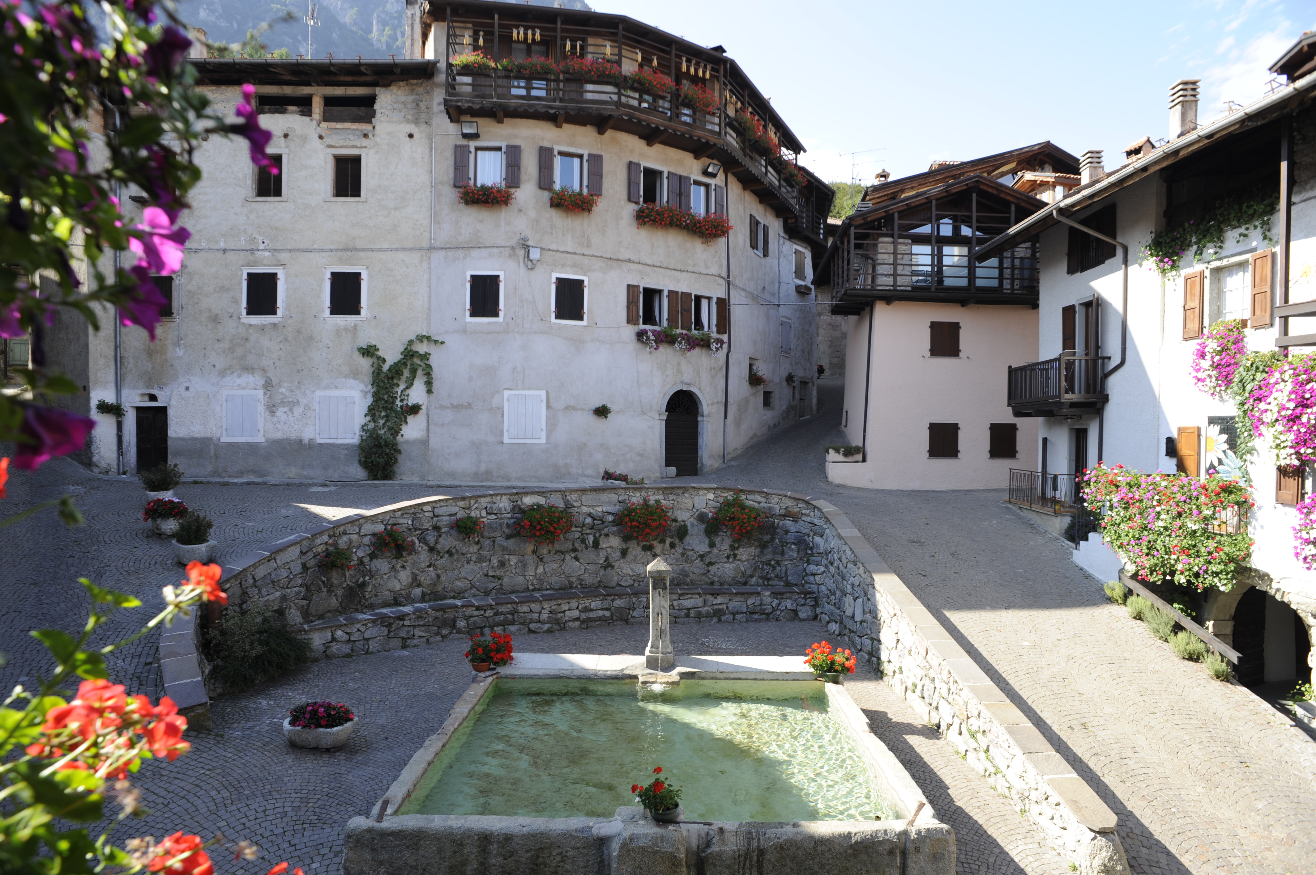 Secluded in the mountains, almost as if seeking reassuring protection, surrounded by woods or stretches of cultivated land that over the centuries have been a source of survival for their communities, the villages of Trentino open their doors, letting their courtyards, with their typical stone fountains, frescoes and signs of the sacred on their façades, porticoes, barns and wooden balconies where ears of corn or walnuts are still dried, tell their own story.