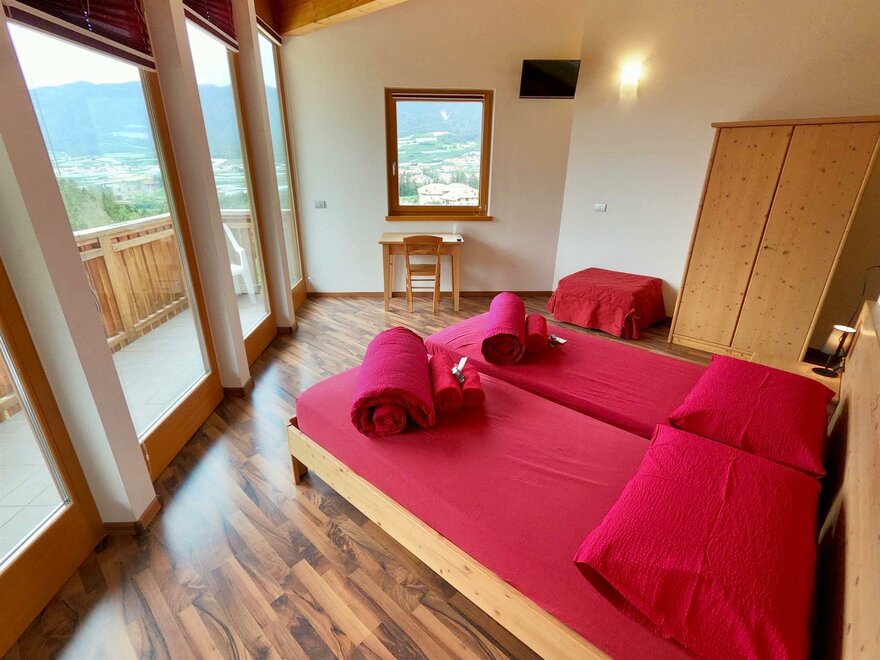 Трехместный номер с террасой и видом на долину. Ванная комната состоит из туалета, биде и душа. Номер оснащен телевизором, постельным бельем, полотенцами и набором средствами для душа.