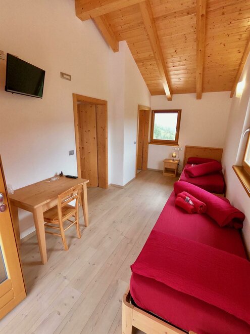 Апартамент с двумя спальнями (одна одноместная и одна трёхместная). Имеет балкон с видом на долину. Оснащён кухней, столовой и гостиной с диваном и телевизором. В ванной комнате есть туалет, душ, биде и стиральная машина. Постельное бельё предоставляется.