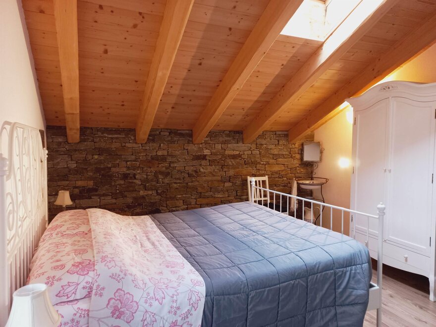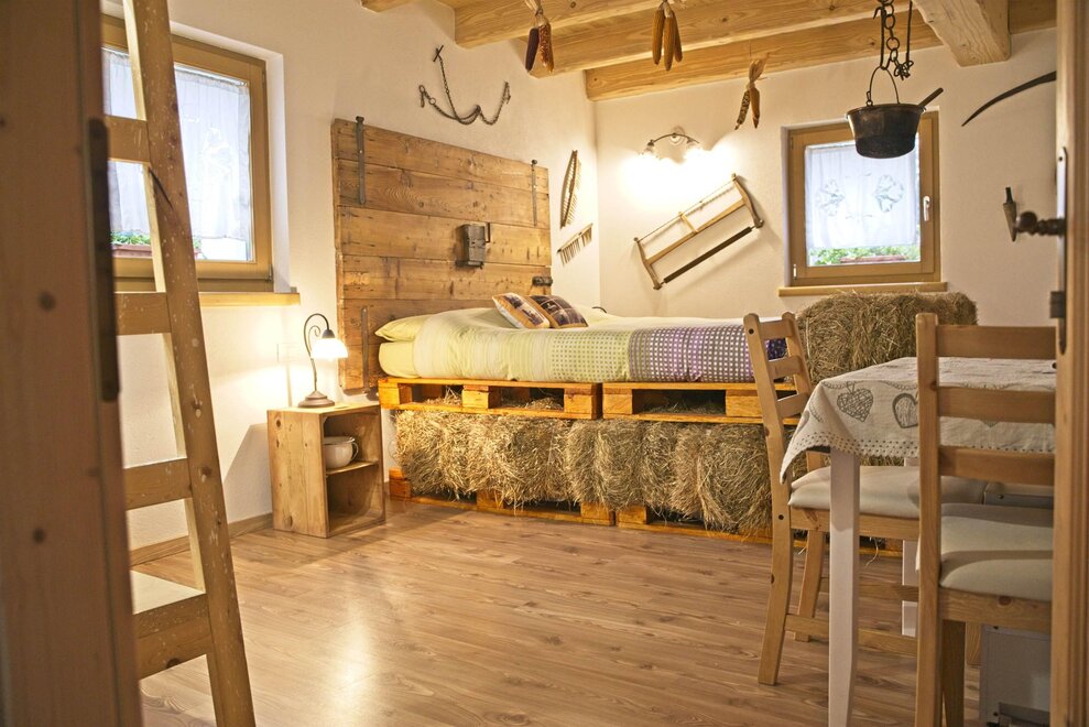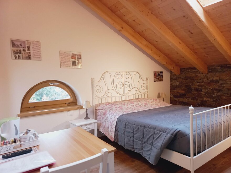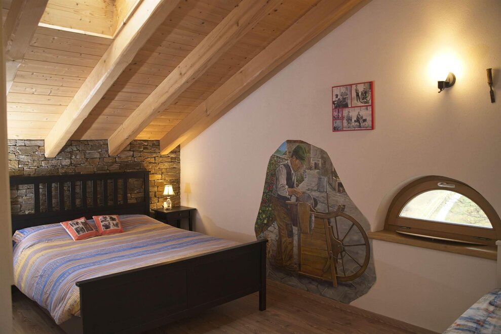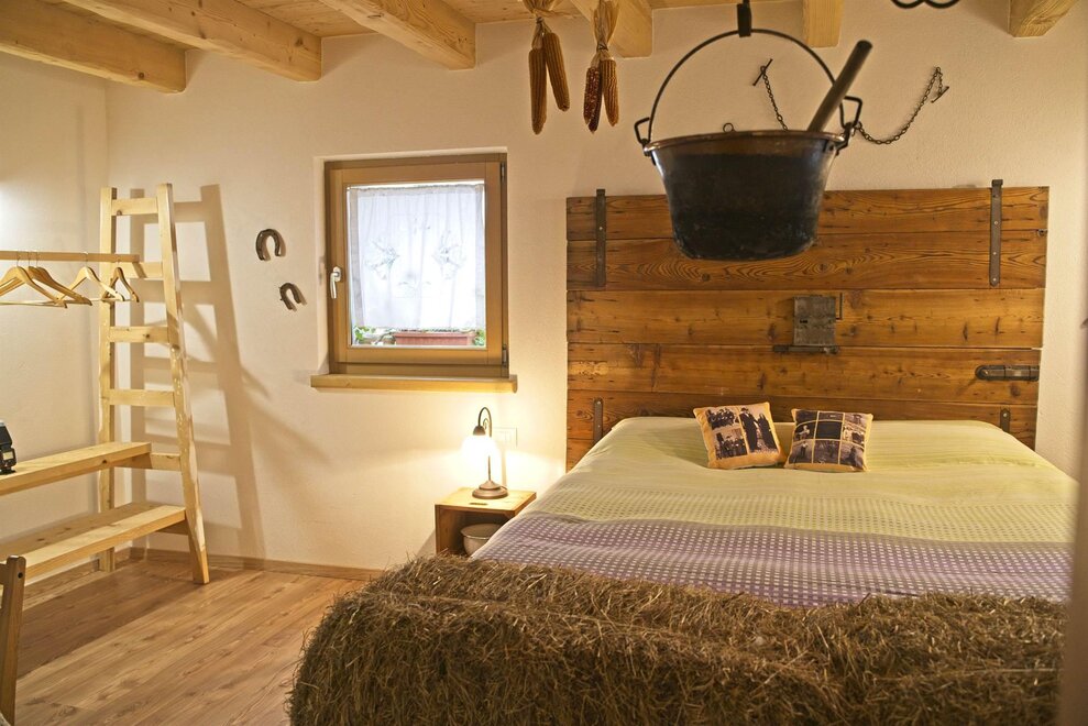 КОМНАТА КРЕСТЬЯНИНА Фигура Крестьянина глубоко характеризовала нашу долину, и именно этой комнате посвящена, наполненной инструментами и утварью, относящимися к прошлому. Вы вдохнете аромат сена (с горы Мезза), обладающего признанными терапевтическими свойствами, снимающими усталость и расслабляющими! Комната оборудована телевизором с плоским экраном, электрическим чайником с чаем и травяными настоями, свежими или сушеными фруктами, отдельной ванной комнатой с полотенцами и феном. Погрузитесь в прошлое, приходите спать, окутанные запахом сена!