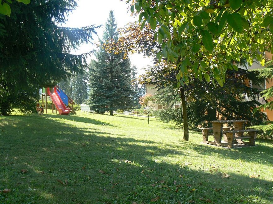 Структура окружена большим ограждённым садом, где дети могут развлечься на свежем воздухе на маленькой детской площадке, а взрослые расслабиться, загорая на солнце.