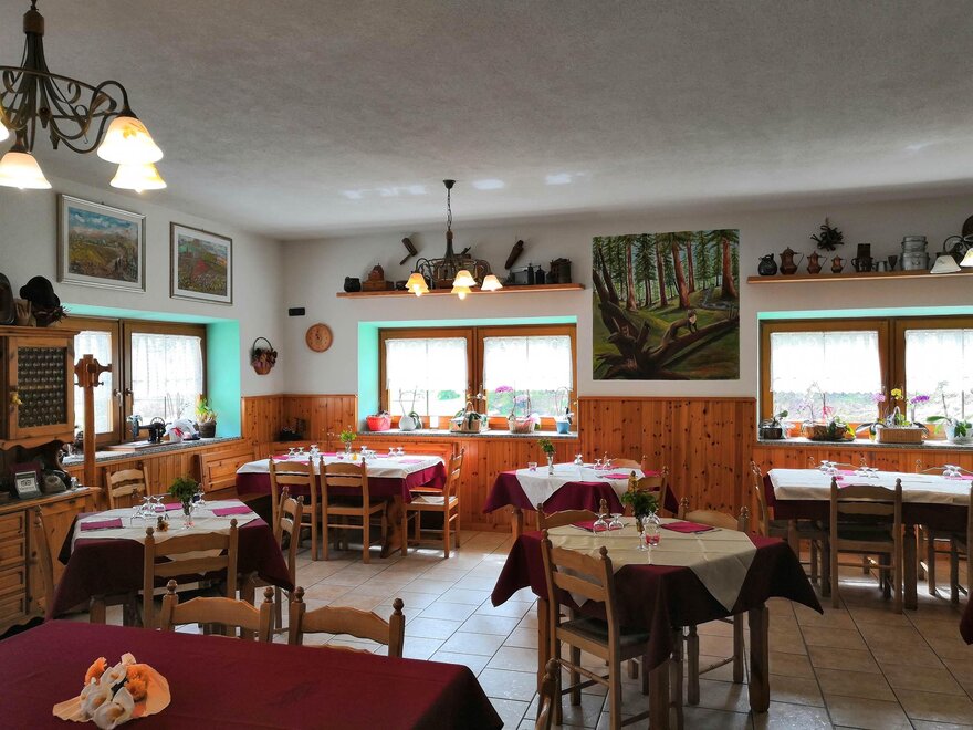 Ресторан Ristorante предлагает блюда, приготовленные из продуктов местной фермерской экономики и региона, чтобы насладиться ими в тишине и спокойствии прекрасной Долины Ледро.