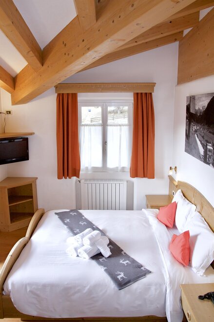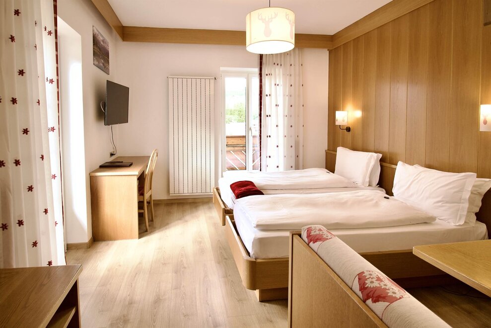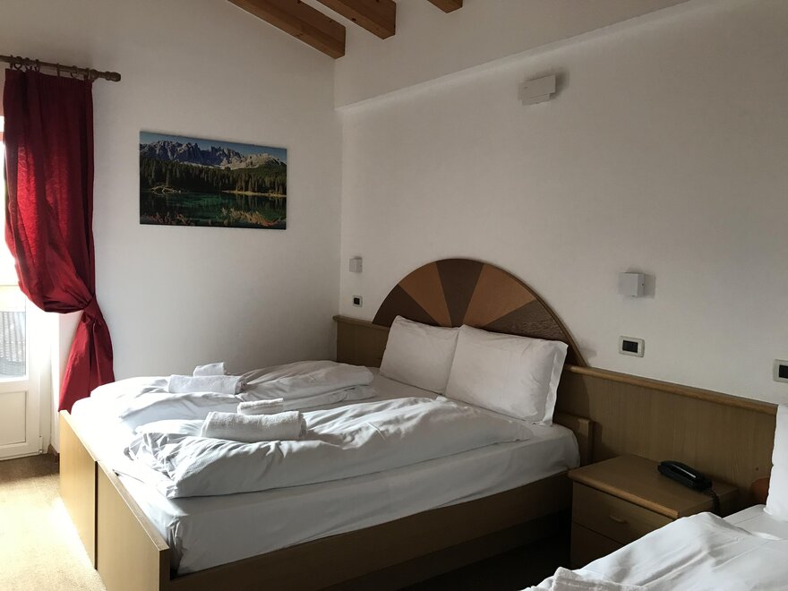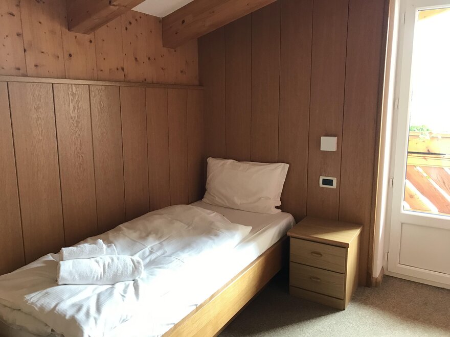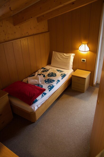 Светлые и уютные номера, все с балконом, чтобы предложить вам прекрасный вид на Доломиты Вал ди Фасса Одноместные номера все с балконом и имеют все удобства. Один одноместный номер примыкает к двухместному, другие имеют чуть более крупную кровать.