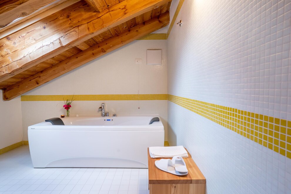 Количество гостей 2. Площадь 33 м². Деревянный пол. Находится на мансардном этаже. Двуспальная кровать (180x200 см), которую можно разделить на две односпальные кровати. Джакузи в отдельном помещении, ванная комната с двумя раковинами, душ. Мини-балкон (без стола и стульев). Биологические туалетные принадлежности. Телевизор. Wi-Fi. Мини-бар. Письменный стол. Сейф.