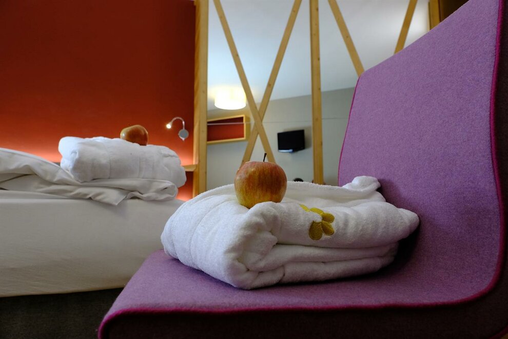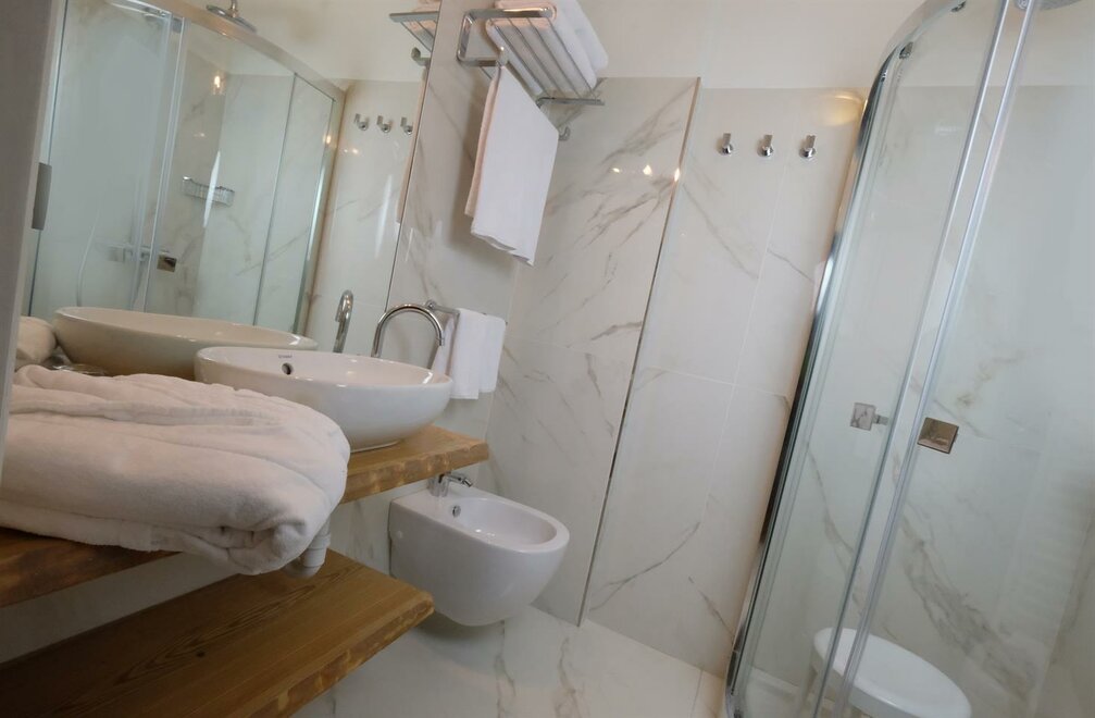 JUNIOR SUITE VITA NOVA WELLNESS: a special holiday dedicated to romance and wellness. Finely equipped, elegant and modern, with double bed, bath with shower, balcony. Possibility to add 1 baby bed or 1 single bed. Soft bathrobe for 2 adults and welcome gift: basket of fruit and 1 bottle of wine. INCLUDED also admittance to the wellness area, swimming pool and gym
