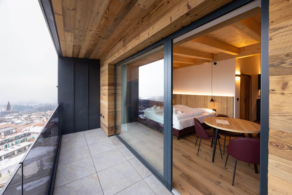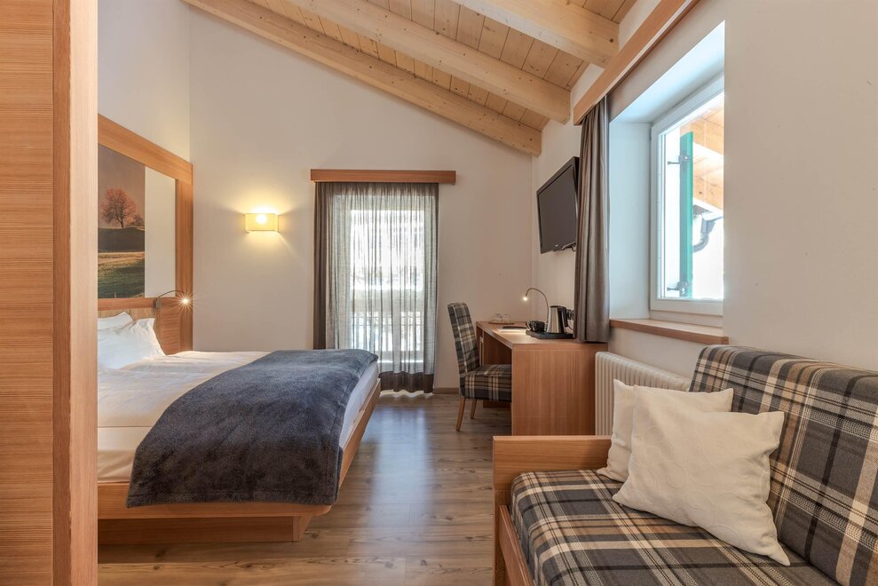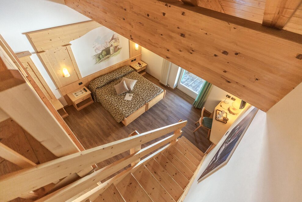 In these rooms - furnished with local brushed fir tree wood from Trentino - you will find a graceful and natural atmosphere and care of the details. wIth telephone, 22’’LCD TV and international channels, safe box, hairdryer all of them have private balcony