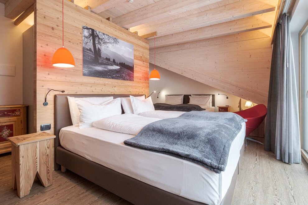 Wider rooms furnished with the wood of our forests and the advantage of wider space for your relax.