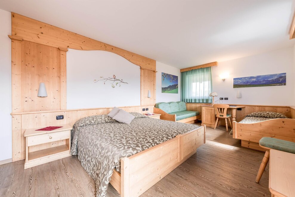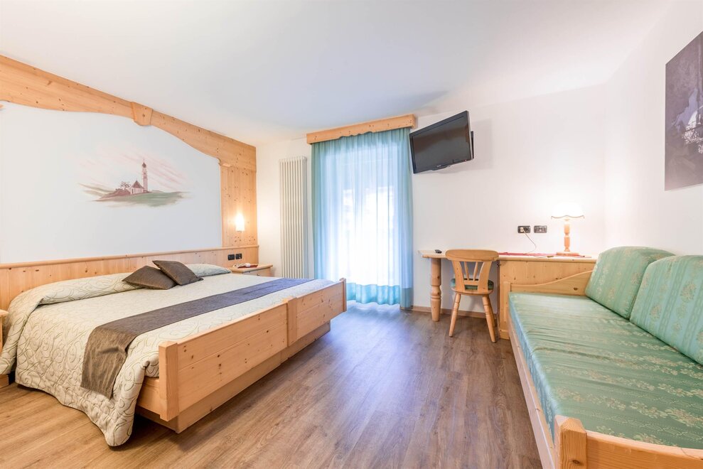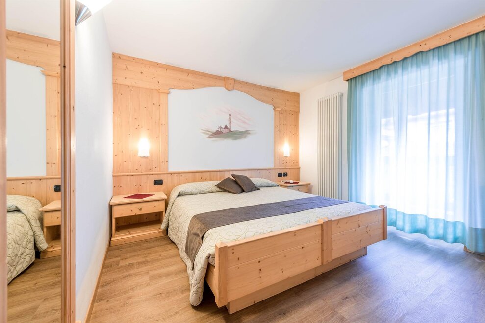 Обновленные и комфортабельные номера, где можно вернуть гармоничную и естественную атмосферу в интерьере из щетинистого трентинского елового дерева и тщательной проработке деталей. Оснащены отдельными удобствами, LCD-TV 22" с международными каналами, возможностью подключения к Wi-Fi, телефоном, феном, сейфом и часто балконом.